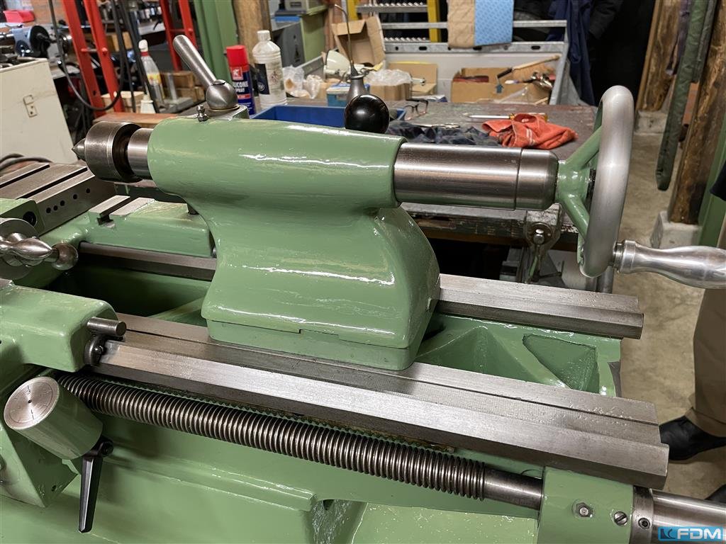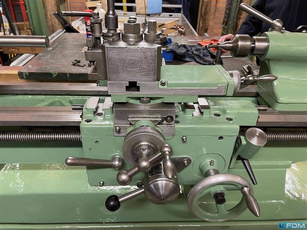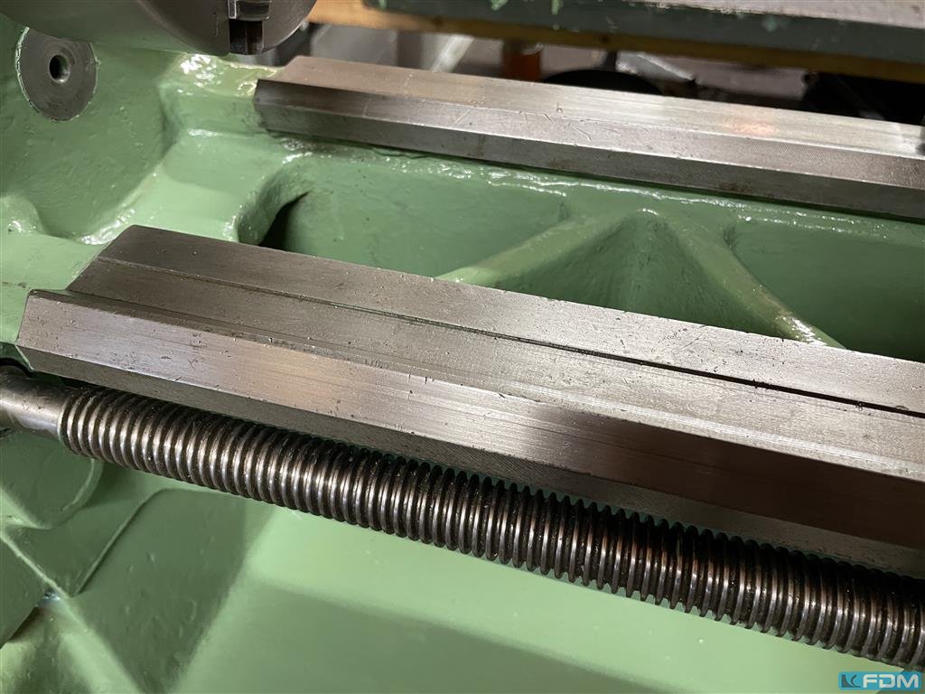 turning diameter over bed:350 mm turning diameter over slide rest:240 mm turning length:800 mm Spindle RPM:40 - 2000 in 8 Stufen 1/min total power requirement:3 kW Spindle bore:26 mm tailstock quill taper MT:MK 2 dimensions of the machine ca.:1,5 x 1,0 x 1,6 m weight of the machine ca.:1,9 t Very well maintened center lathe with accessories - 3-jaw, 4-jaw chuck - tailstock with center - 1 boring head - RAPID quick tool change device with 3 holder - saddle mounted steady rest - collant device - set of collets appr. 75% size B 32