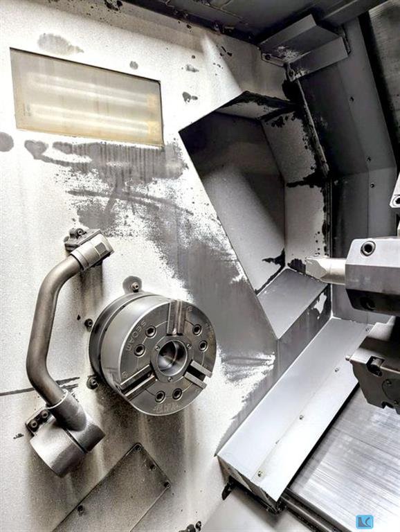 turning diameter: 400 mm turning length: 584 mm greates pass round over bed: 750 mm control: Siemens 828 D Shop Turn spindle passage: 81 mm spindle speed:: 3500 U/min spindle motor: 18,5/22 kW max. torque on the spindle: 410 Nm no. of tools in turret 1: 12 BMT 65 driven stations: 12 BMT 65 speed of driven tools: 5000 U/min drive milling spindle: MK 5 kW y-axis: +/- 60 mm rapid traverse: 30/30/10 m/min tail stock: MK 5 range L-W-H: 4,6 x 1,9 x 2,1 mm weight of the machine ca.: 6,65 t CNC lathe with driven tools, Y- axis and sub spindle - 3 jaw chuck Kitagawa Ø 250 mm - Chip conveyor - partscatcher with box into door - signal lamp - 2 +2 driven toolholder - some fixed toolholder - boxway system - tool measuring - programmable tailstock - coolant 23 bar - bigger coolant tank 225 ltr. - double cartridge filter - coolant gun - two steps coolant pressure The data for this ad was created wit ...