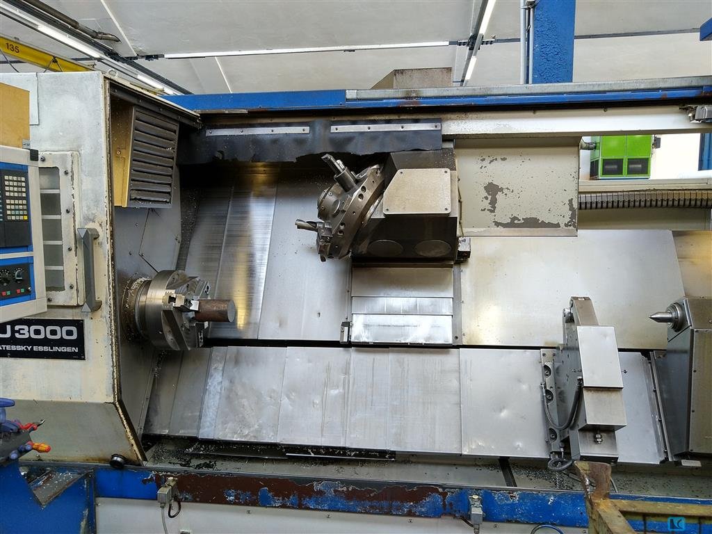 turning diameter:626 mm turning length:3000 mm Turning diameter:600 mm spindle bore:100 mm spindle turning speed range:2800 U/min weight of the machine ca.:18 t Machine overhold and retrofit in 2003 with SIEMENS 840 D control - NC steady rest - 12-fold revolving head - splash doors - tailstock - coolant device