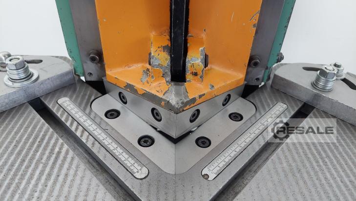 Espessura máxima da chapa: aço 6 mm Ângulo ajustável 30-120 graus Comprimento da faca: 200 mm Ecrãs digitais angulares à direita e à esquerda Peso: aprox. 1.200 kg