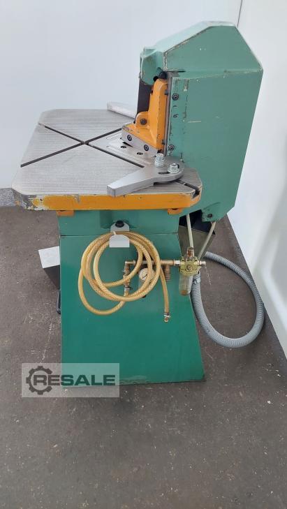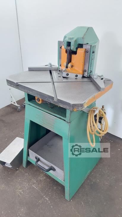 Lg.Nr. 26092 Dados técnicos: - Cabeça de corte de 90° operada pneumaticamente - Espessura de corte - aço normal até 2 mm - Aço inoxidável até 1,5 mm - Alumínio até 3 - Comprimento da lâmina: 130 mm - Tamanho da mesa W 600 x D 380 mm - Altura de trabalho 940 mm - Pedal - Requisito de ar comprimido 6 - 8 bar - Requisito de espaço aprox. E: 600 x D: 1250 x D: 850 mm - Peso aprox. 180 kg