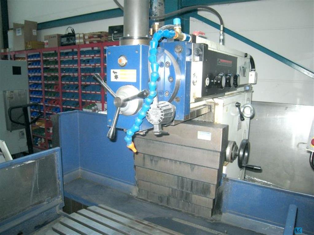 Produção INTOS Zebrak Tjechië Tipo FNGJ 20 Chalkboard afmeting breedte x lengte 400 x 256 mm Plaatsing longitudinal X = as 450 mm Dwarsverplaatsing Y = como 300 mm Verticaleverplaatsing Z=as 350 mm Eixo opname SK 40 DIN 2080 Toerental do eixo 50 -2500 rpm. Aantal toerentallen 18 Folha voeding X-Y como 8-400 mm/min. Folha voeding Z como 4-200 mm/min. Travessia rápida X-Y como 2400 mm/min. Travessia rápida Z como 1200 mm/min. Capacidade eletrificada 2,2 kW Afmetingen L x L x A 1735 x 1475 x 1660 mm Peso 1660 kg Standaard toebehoren Koelmiddel enriquecimento Heidenhain uitlezing conheceu provador