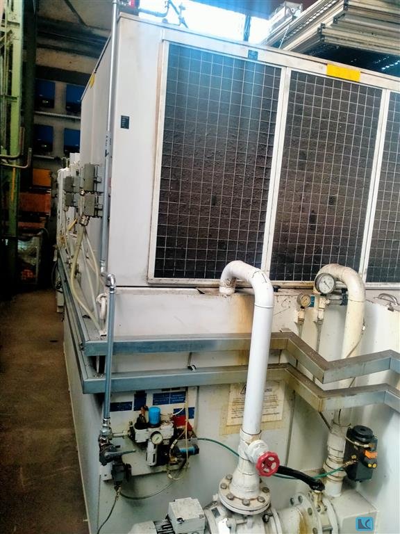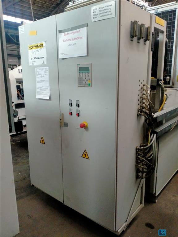 Travel X/Y/Z: 2000mm/750mm/800mm, NC rotary table diameter: 950mm, milling head: SK50, milling head tilt: +/-90°, tool positions: 48, max. workpiece weight: 2500kg. Dimensions X/Y/Z: approx. 4000mm/3100mm/3200mm, weight: approx. 16000kg, control: Heidenhain 640. Including measuring probe M & H, 40bar IKZ, work area extraction Reven, paper belt filter Resy, brine conveyor, chip cleaning gun, wedge chuck Schink, diameter: 630mm, with various clamping jaws and other various turning and milling tools. Documentation available. On-site inspection is possible.