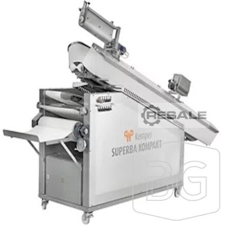 Coming soon! composed of: Dough divider type IMPERATOR II Stainless steel with digital control with plastic funnel for approx. 160kg dough Weight range approx. 200 – 2,350g/piece Output approx. 1,500 pieces per hour Speed infinitely variable Belt round and long mould type SUPERBA KOMPAKT Weight range 500 - 2,000 g / piece Hourly output 800 - 2,000 pieces Ribbon Rounder 250cm Knitted Length Adjustable trough inclination Long moulder up to max. product length 50cm Knitted distance 170cm Stainless steel incl. 2 flourers - Tested and cleaned - Ribbons new