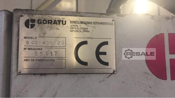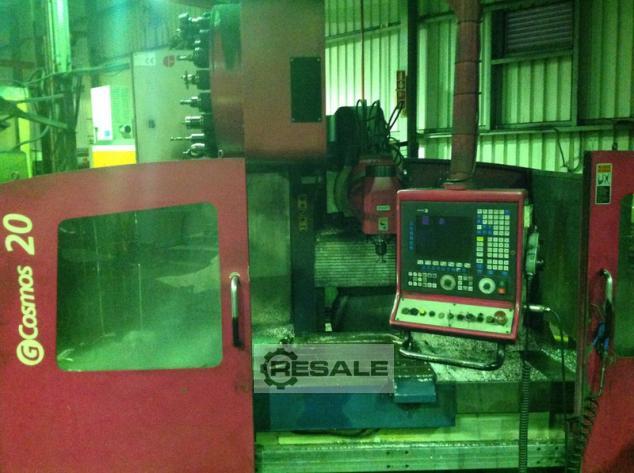 Fresadora Horizontal CNC LAGUN mod. G Cosmos 20 Fabricante: Lagun Tipo: G Cosmos 20 Ano Europeu: 2004 Controlo: Fagor 8055 Superfície da mesa: 2000x700 mm Ranhuras T: 5x18x116 mm Carga máxima sobre a mesa: 4000 kg X-curso: 2000 mm Curso em Y: 800 mm Curso Z: 1000 mm Cone de fresagem: ISO 50 Velocidade do eixo: 15000 rpm Avanço rápido (X-Y-Z): 24 mm/min Potência do motor principal: 17 - 20,5 kW Potência total necessária: 27 kW Peso da máquina: 10600 kg Dimensões: 5495x3440x3016 mm