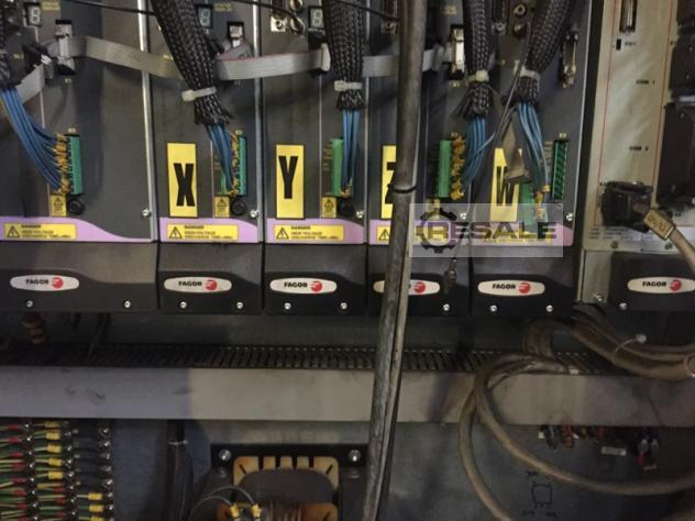 Metralhadora de fresagem tipo cama CNC de 5 eixos LAGUN mod. GBM 22E Fabricante: Lagun Modelo: GBM 22E YOM: 2000 Controlo: Fagor 8055 Superfície da mesa: 2200x1040 mm Distância do Centro da Tabela à Coluna: 1217 mm Nº de slots em T e largura: 7 - 22mm Distância da ranhura: 140 mm Peso máximo sobre a mesa: 7000 kg X- Curso do eixo: 2000 mm Curso do eixo Y:: 1000 mm Z- Curso do eixo: 1000 mm C- Curso do eixo: +/- 180 A- Curso do eixo: +/- 180 Cone do eixo: ISO 50 Potência principal: 22/27.5 kW Variação de velocidade continua: 50 ÷ 3000 rpm Avanço rápido: 10000 mm/min Peso da máquina: 15000 kg