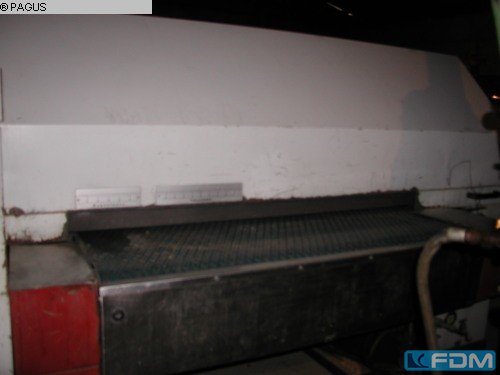 A deburring machine with extraction is available. Passage width: 1000mm, sheet thickness: 20mm, minimum sheet size X/Y: 150mm/100mm, sound power level: 82dB(A), feed rate: 4m/min, dimensions X/Y/Z: approx. 2200mm/1500mm/1500mm, weight: approx. 1600kg, operating hours: 7152h. Including P. Ries 330 D Lissmac extraction unit, year of construction: 2007, filter area: 10m², air volume: 3300m³/h, negative pressure: 33mbar. Documentation available.