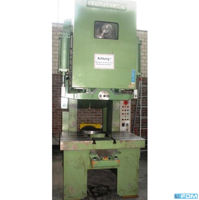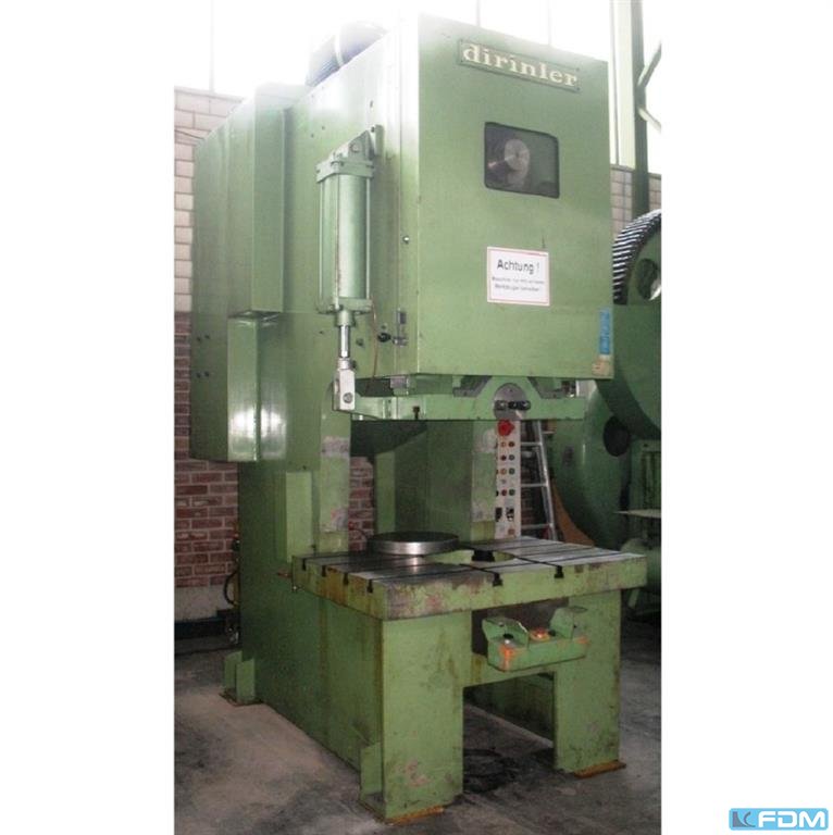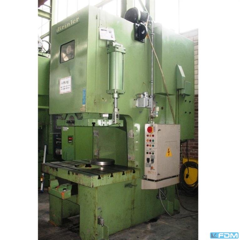 Dirinler CD/PC 600 H - Prensa excêntrica - incluindo ferramentas e acessórios - Construído em 1990 Especificação - Capacidade: 60 t - Taxa de curso: 52 rpm - Ajuste do êmbolo: 80 mm - Dimensões da mesa: 750 x 480 mm - Área do êmbolo: 360 x 250 mm - Mesa de recesso: Ø 170 mm - Projeção: 250 mm - Velocidade do motor: 1400 rpm - Potência do motor: 4 kW - Tensão de funcionamento: 400 V - Dimensões da máquina LxAxP: 950 x 2500 x 1900 mm - Gabinete de controle de dimensões LxAxP: 60 x 115 x 35 mm - Peso: aprox. 4000 kg