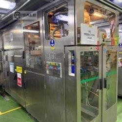 Usé la línea de embotellado de zumo en botellas cilíndricas de cristal. Capacidad de línea: 250 ml – capacidad de línea 9.000 – 12.000 pcs/h 330 ml – capacidad de línea 9.000 – 12.000 pcs/h 750 ml – capacidad de línea 5.000 unidades/ Botellas con tapón con giro y diámetros de 43 y 38 mm La línea incluye los siguientes dispositivos: Despaletizador de botellas tipo DNB-15. Pulverizador tipo PBSz – 01 – 40. Tipo monobloque Stork VS 32. 32 rellenos. Año de fabricación: 2015. Máquina automática de tapas con función de inyección de vapor modelo GG100. Etiquetadora rotativa de KRONES BONOMATIC Empaquetador automático de botellas tipo APB VENUS – 15. 10 ciclos/min Impresora de inyección de tinta CIJ Videojet Modelo VJ 1620- Secador de botellas lineal tipo LOB-25. Pasteurizador. Transportadores.