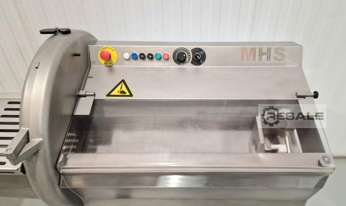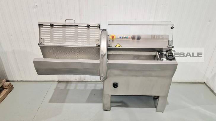 Bife da marca MHS, modelo PCE70/21 está à venda. Equipamento usado completamente reconstruído e revisto (re-lançamento). É uma máquina de cortar carne com ou sem osso, também é adequada para outros tipos de produtos, como peixe. A vantagem deste tipo de máquina é que consegue cortes homogéneos e constantes, pelo que a qualidade é alcançada na produção. Características: corte de 3 mm a 5 cm, dependendo do osso, a temperatura do produto a ser cortado é de -10 graus a +3 graus. Tensão: 3F + T + N, freqüência 50HZ, corrente 5,5 A. Facilidade de manuseio e limpeza. Construído em aço inoxidável na sua totalidade. Dimensões externas da máquina: 1860 mm de comprimento x 850 mm de largura x 1230 mm de altura. Dimensões da gaveta do produto: 210mm de altura x 210mm de largura x 700mm de comprimento. Bife, fatia de lombo, cortador de costeleta, fatia de porco, fatia de bif ...