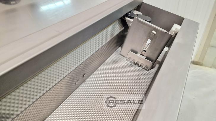 Características do dispositivo: Dimensões máximas do produto (comprimento x largura x altura): 700x320x140 mm. Precisão de 0,5 mm. Velocidade de corte: 130 peças/min. Limpeza rápida e fácil. Espessura da fatia: 3-18 mm (ajustável) Garantia: 6 meses de garantia das peças - em todo o mundo.