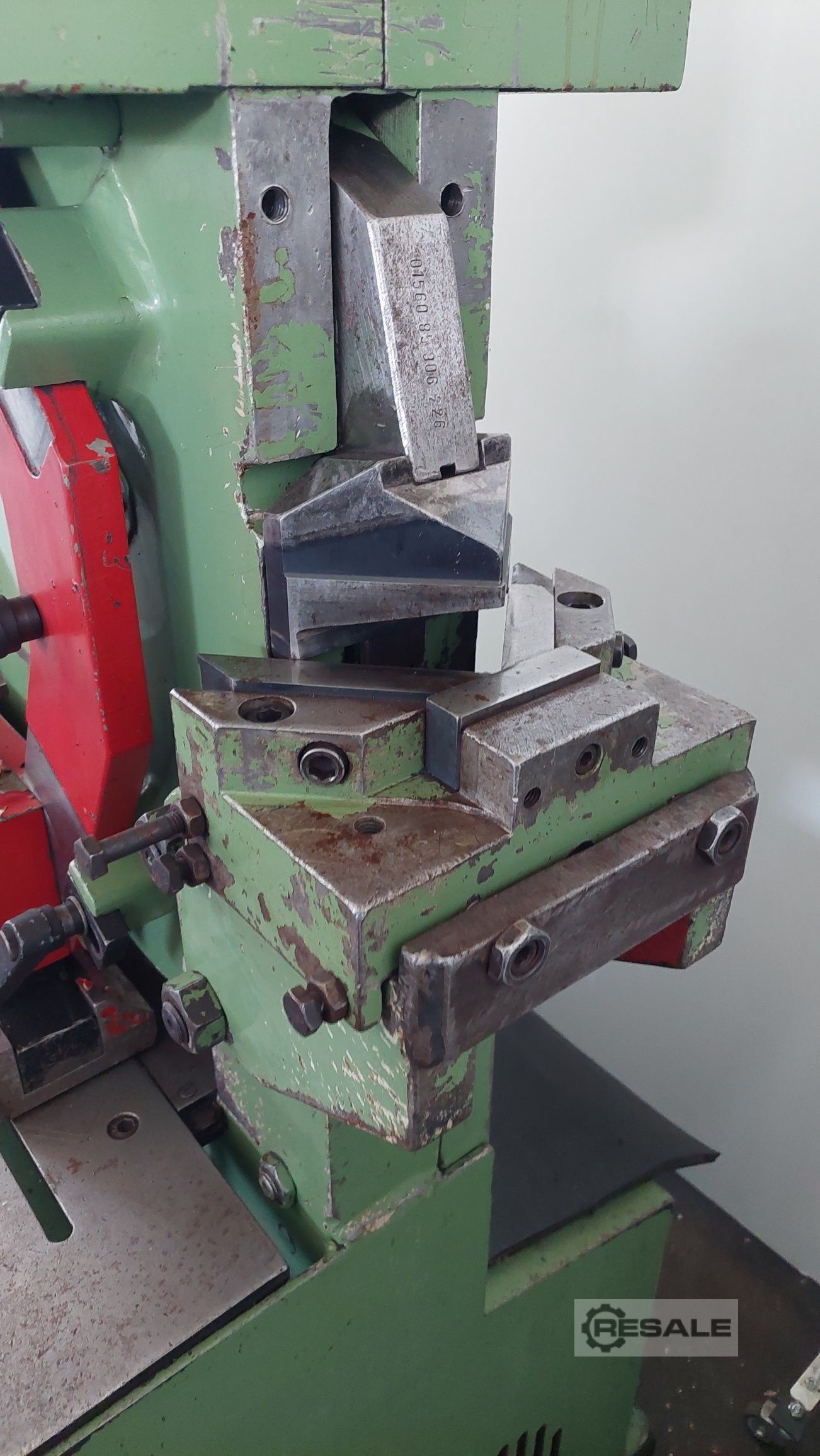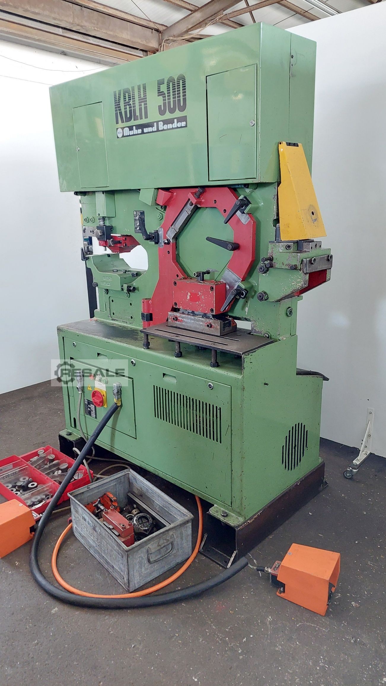 Max. punching force: 700 kN Projection: 510 mm Cuts on flat steel shears 500 x 18 mm Holes e.g. 30 mm diameter in 20 mm flat bar Range of tools is included in the price Weight: 3,000 kg