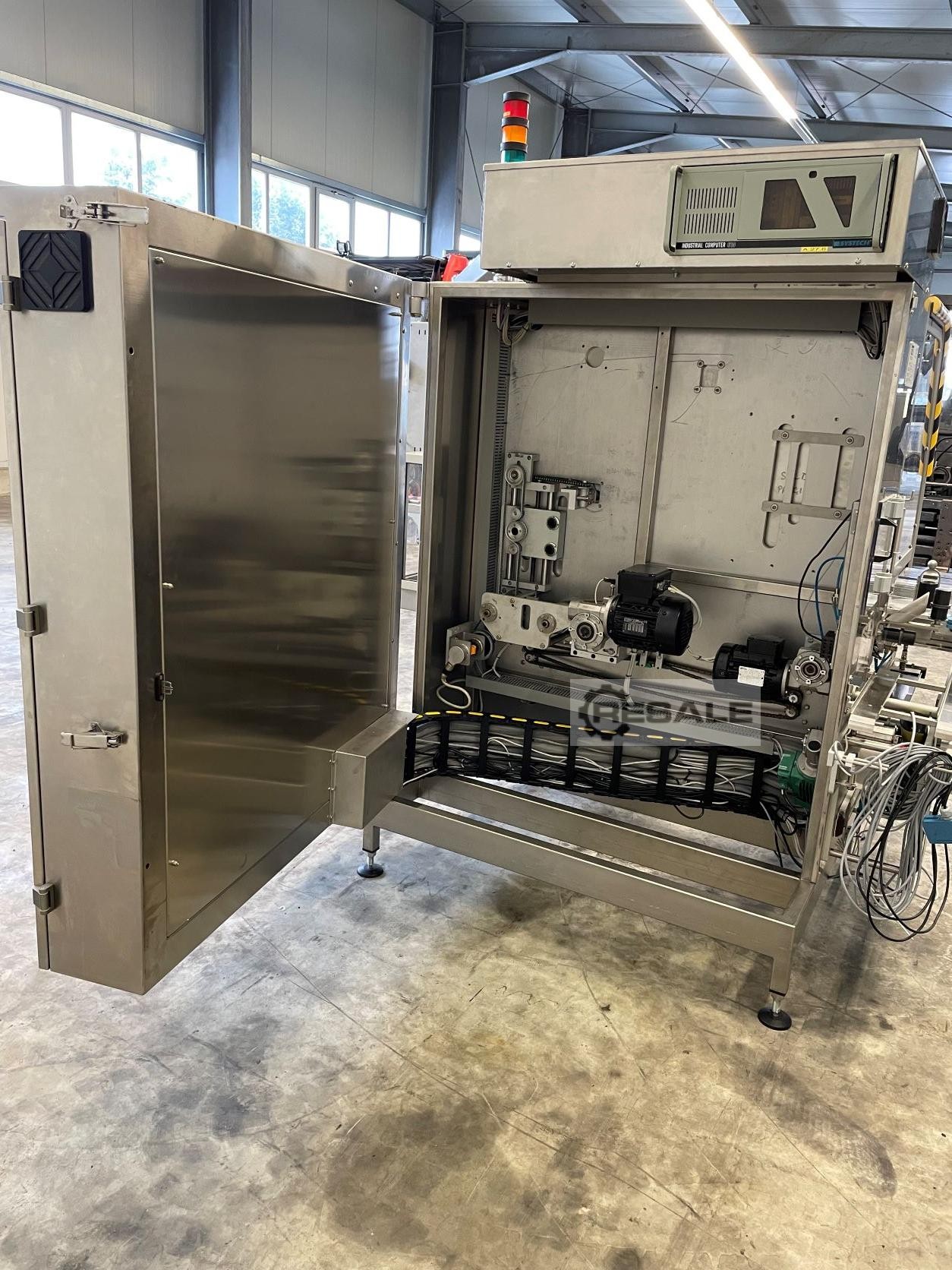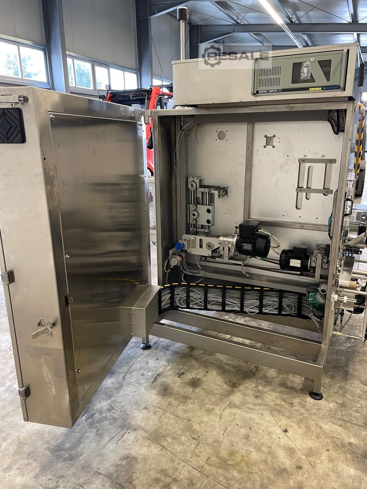 Etiquetadora automática en diseño de balcón para la aplicación de viñetas autoadhesivas y etiquetas a prueba de manipulaciones (cierre de avión y desde arriba). Capacidad: hasta 180 pcs/min. Sistema incluido: - PLC SIEMENS, tipo S7-300. - HMI PC SIEMENS IPC 677 - Sistema de impresión REAJET de 2 pliegues, tipo HRpro con sistema de control de cámara - Preparación para el sistema de visión LAETUS WT Commandor - Ancho de la cinta transportadora: 250 mm - Varios sistemas de control para la presencia de etiquetas con expulsión, etc.