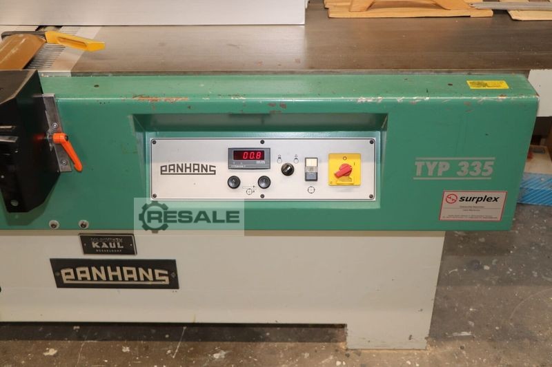 Planer Brand: Panhans Type: 335/20 New machine Technical data: - Planing width 510mm - Feed table length 1620mm - Delivery table length 1170mm - Total table length 2850mm - Blade shaft speed 5000 rpm. - Extraction nozzle Ø 160mm - Chip removal up to 8mm - Weight approx. 1,050 kg Motor power 5.5kW / 7.5PS Voltage 400V / 50 Hz Required space approx. 2900 x 1500mm Solid German mechanical engineering For dressing and joining, including hollow and pointed joint setting for planing widths up to 510 mm and max. Chip removal up to 8 mm Ergonomic working position directly on the blade shaft PANHANS solid steel blade shaft ø 125 mm with 4 pieces of Tersa reversible blade Finely planed machine tables, total table length 2850 mm Control panel above at eye level with digital display of chip removal, the current delivery table situation (neutral, hollow or pointed joint), ...
