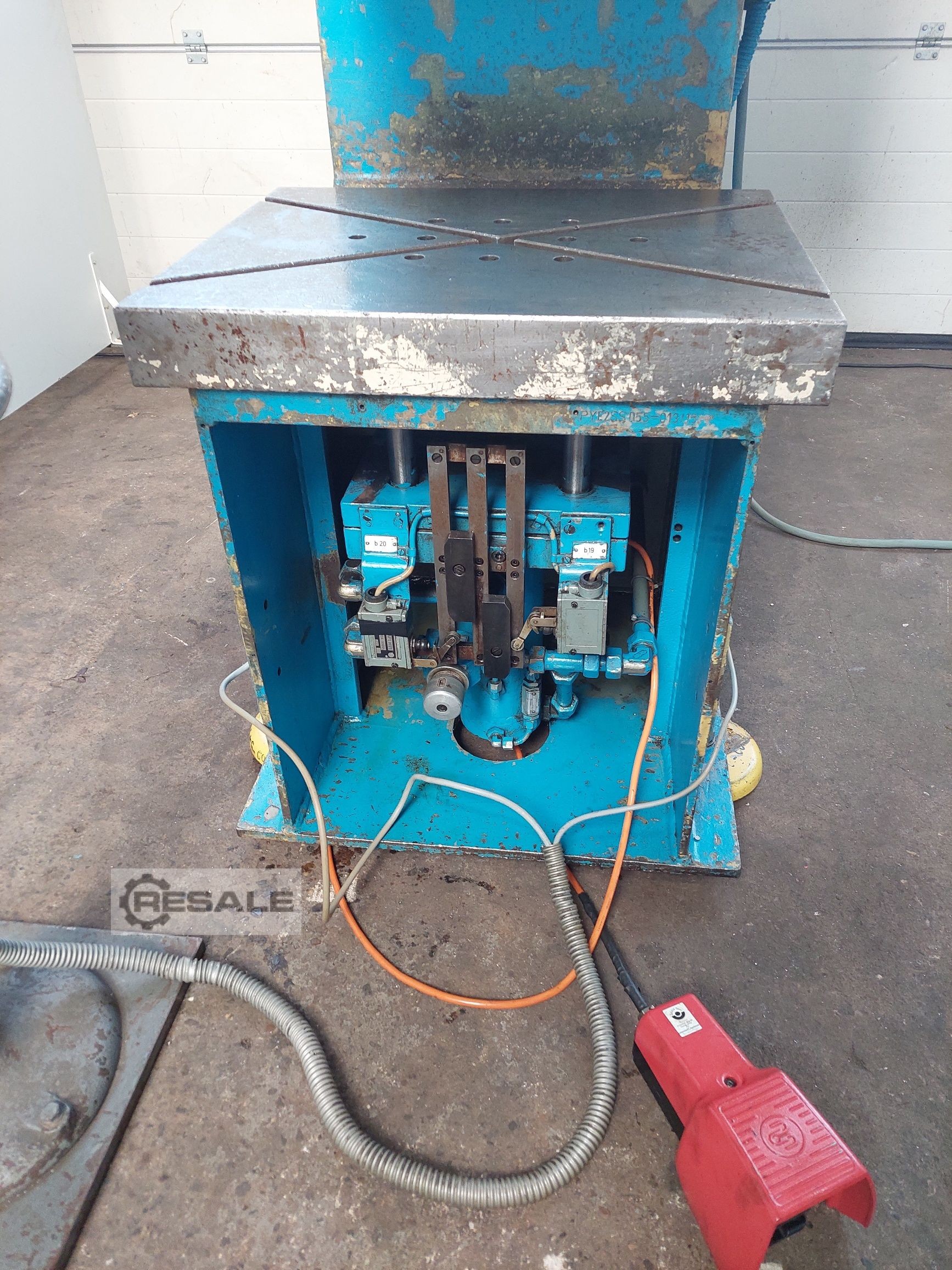 Venda devido à mudança para a imprensa excêntrica Força de prensagem 100 toneladas Profundidade de carga 360 mm Curso 500 mm Luz do dia 800 mm Área do êmbolo: 530 x 400 mm Altura da mesa acima do piso 710 mm Velocidade de trabalho 10mm/seg Velocidade de aproximação 150 mm/seg Velocidade de retorno 150 mm/seg Potência necessária 17 kW Dimensões L x W x A 1.400 x 2.000 x 3.200 mm Peso da máquina aprox. 5,1 t Ano de fabrico 2001 O preço é líquido, o IVA pode ser reclamado. Instalações de carregamento disponíveis Toda a informação sem garantia