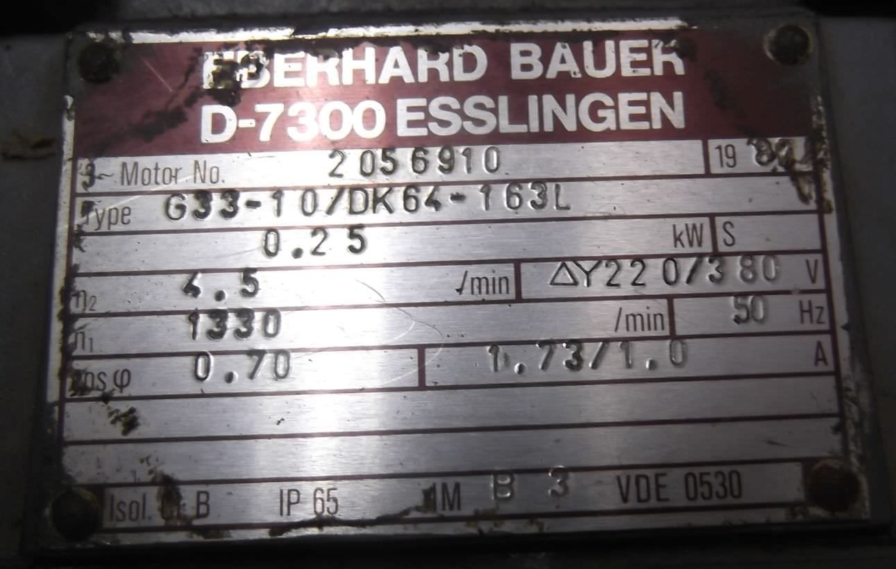 Tipo de máquina: Gear motor 0.25 kW 4.5 rpm