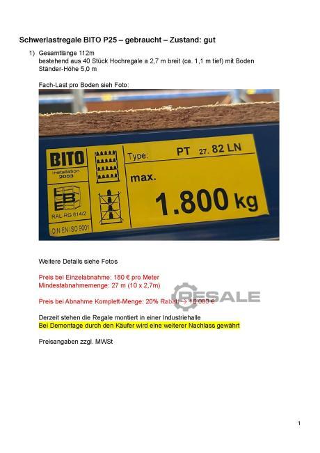 | 1999 | BITO | Palettenregal P25 | 15500 EUR | [Jul 2019] |