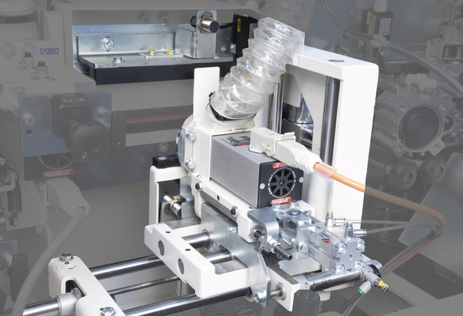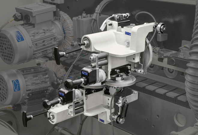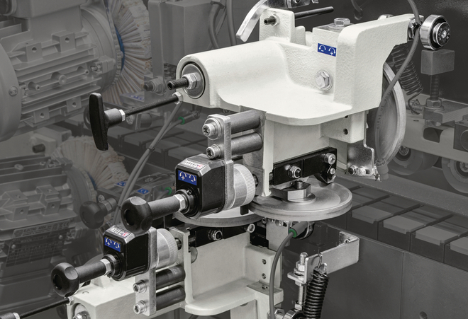 Madeira Sua Auriga 1308 XL Design compacto - espessura da aresta 0,4 - 8 mm Ajuste motorizado da ponte Controlo de Borda de Ecrã PLC, PPC 319W, Monitor de Ecrã Tátil de 18,5 polegadas Controlo Adaptativo de Pressão e Quantidade de Adesivo e Rotina de Enxaguamento da iTronic Unidade de pré-fresagem para fixação à frente da peça colada Carregador de borda totalmente automático para produtos de rolo e tira Estação de aplicação de cola Cartuchos GLU JET + colagem PU, com bocal de sondagem Altura da peça de trabalho 8-60 mm Embalagem brilhante Unidade de impressão pneumática Unidade pneumática de corte transversal para cargas de rolo e tira até 8 mm de espessura nas arestas com troca pneumática de 0 a 10 mm Unidade de fresagem multifunção 1827 MOT4 fresagem enrasada 8 mm, fresagem de raio – fresagem chanfrada 15 via eixos NC Unidade de fresagem em forma - ...