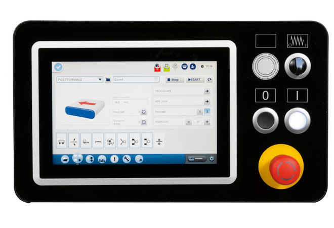 Pre-milling unit: yes; Pre-milling unit material removal: 0 - 2 mm; plastic edges: 0,4 - 3 mm; solid wood edges: 0,5 - 5 mm; Workpiece thickness: 8 - 50 mm; Minimum length of workpiece: 120 mm; Min. work piece width: 110 mm; Anti-adhesive spraying unit: yes; Edge preheating device: yes / with ceramic infrared lamp; Bonding unit: granulat / Glue container quick-change kit; Jack knife: yes; Flush trimming unit: yes; Corner copy unit: yes; Flush radius milling unit: yes; Radius scraper unit: yes; Area scraper unit: yes; Buffing unit: yes; Cleaning spray unit: yes; motor power: 5 kW; machine length: 3774mm; machine width: 1546 mm; machine height: 1337mm; weight: 842 kg; Top equipment for high productivity with low space requirements!Intuitive operation with the eye-S control and 10 large touchscreen:- HMI Maestro Active Edge- Graphic display of all processing units an ...