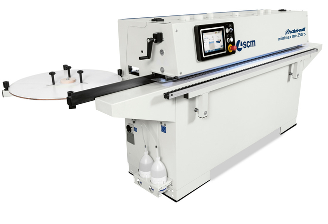 Madeira Her Auriga 1308 FU + PU Design compacto - espessura da borda 0,4 - 6 mm Ecrã PLC Controlo de Bordas PPC 221 Ecrã de Cor Unidade de pré-fresagem para fixação à frente da peça colada Carregador de borda totalmente automático para produtos de rolo e tira Cartucho ou grânulos de cola Glu-Jet EVA e PUR + PU Aplicação de adesivo usando tecnologia de bicos Altura da peça 6-65 mm Autom. Ajuste da altura da cola Unidade de impressão 1912-3 pneumática Unidade de corte transversal pneumática de 1918 para rolos e tiras com até 8 mm de espessura de borda com troca pneumática do bisel 0-10 das serras de corte transversal Unidade de fresagem 1827 MOT 4, fresagem nivelada 8 mm, fresagem por raio - fresagem chanfrada - 15 eixos MOT 1827 NC via painel de controlo Unidade de fresagem de forma 1832 SPS Arredondamento dos cantos até à espessura da aresta de 3 mm em flu ...