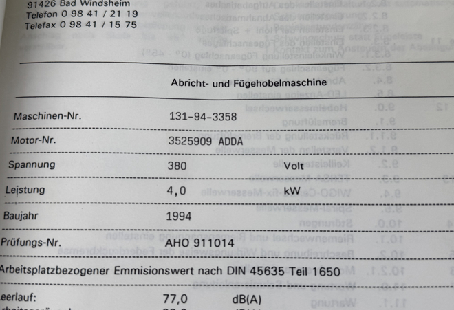 | 1981 | HOFMANN | Hofmann Abrichthobel Typ AHW 4 | 4200 EUR | [Nov 2017] |