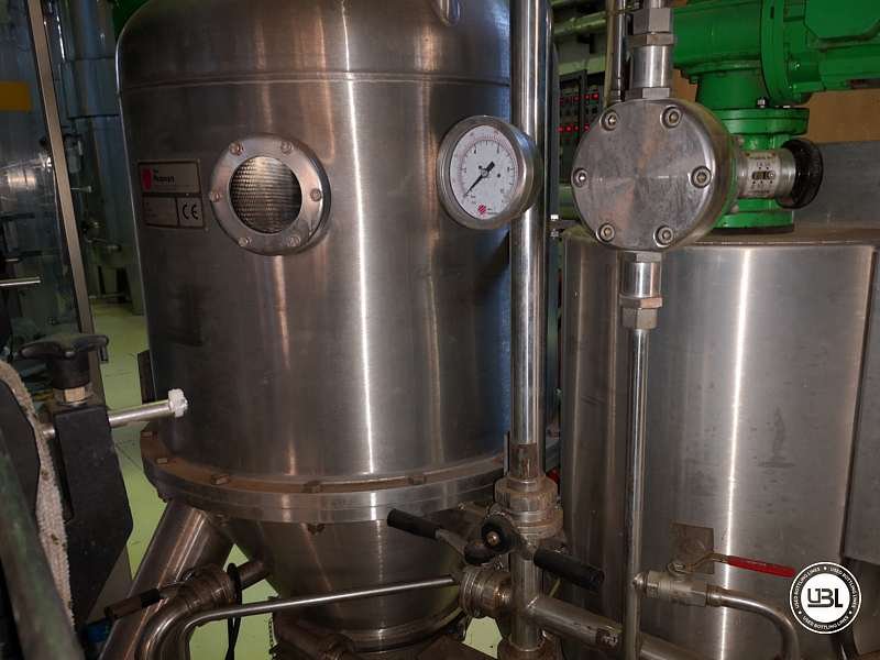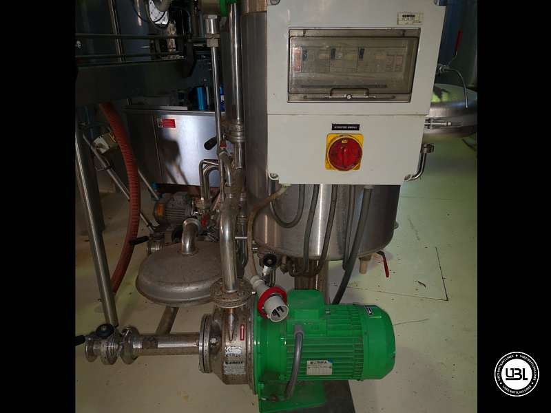Used flash pasteurizer FH4000 2000L-h The Used flash pasteurizer FH4000 2000L-h, produced in 2019 by UDMACHINES, represents an advanced heat treatment system used mainly in the bottling industry. Main features: The Used flash pasteurizer FH4000, with an operating capacity of 2000L per hour, has been designed to guarantee optimal performance and reliability over time. The ability to reach temperatures of 95°C in a four-stage system is particularly impressive, especially considering the -1 L/h water consumption reduction feature. The overall weight of 2000 kg is a testament to the robustness and durability of the machine, while the integrated safety features ensure safe and regulatory-compliant use. Technical details: 1) Pasteurizer 1800-2000 lt/h, equipped with control panel, automatic cleaning, alarm detection for unpasteurized product, electronic data system, suitable for egg product ...