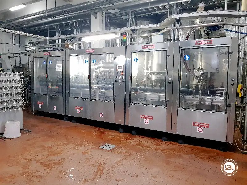 Used Bottling Line for Sale Bertolaso 7000 BPH – 1999 for still and sparkling wine. The bottling Line for Sale as a whole, considering every component, is very well maintained. Clean and without obvious or compromising signs of wear. The sparkling wine bottling line reaches an hourly speed of about 3000 BPH on the 0.75 formats. Depalletizer: The line starts with the Acmi automatic depalletizer model Rasar P130; with an electric roller pallet storage that manages the pallets automatically with two pallets waiting. The maximum height of the workable pallet can reach about 2 meters. The standard pallet size is 800 × 1200 with a height of 140 cm. Automatic inter-layer remover with compressed air rotating arm. It has a parachute safety system that prevents the head from going down in case there is an operator. It is also equipped with a perimeter barrier that blocks the machine in ca ...