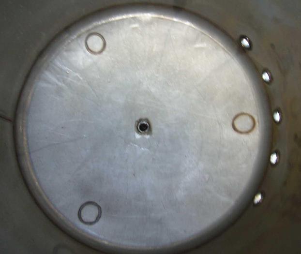56 litre, Stock number: T2783, Litre: 56, Material: Stainless acid proof steel AISI 316, In stock: Yes, Amount in stock: 1 pc., Item: Tank, End bottoms: Conical, Working temperature: -4 - +130° C, Working pressure: 2 bar., Inner diameter: Ø 350 mm., Total height: 750 mm., Year: 1992