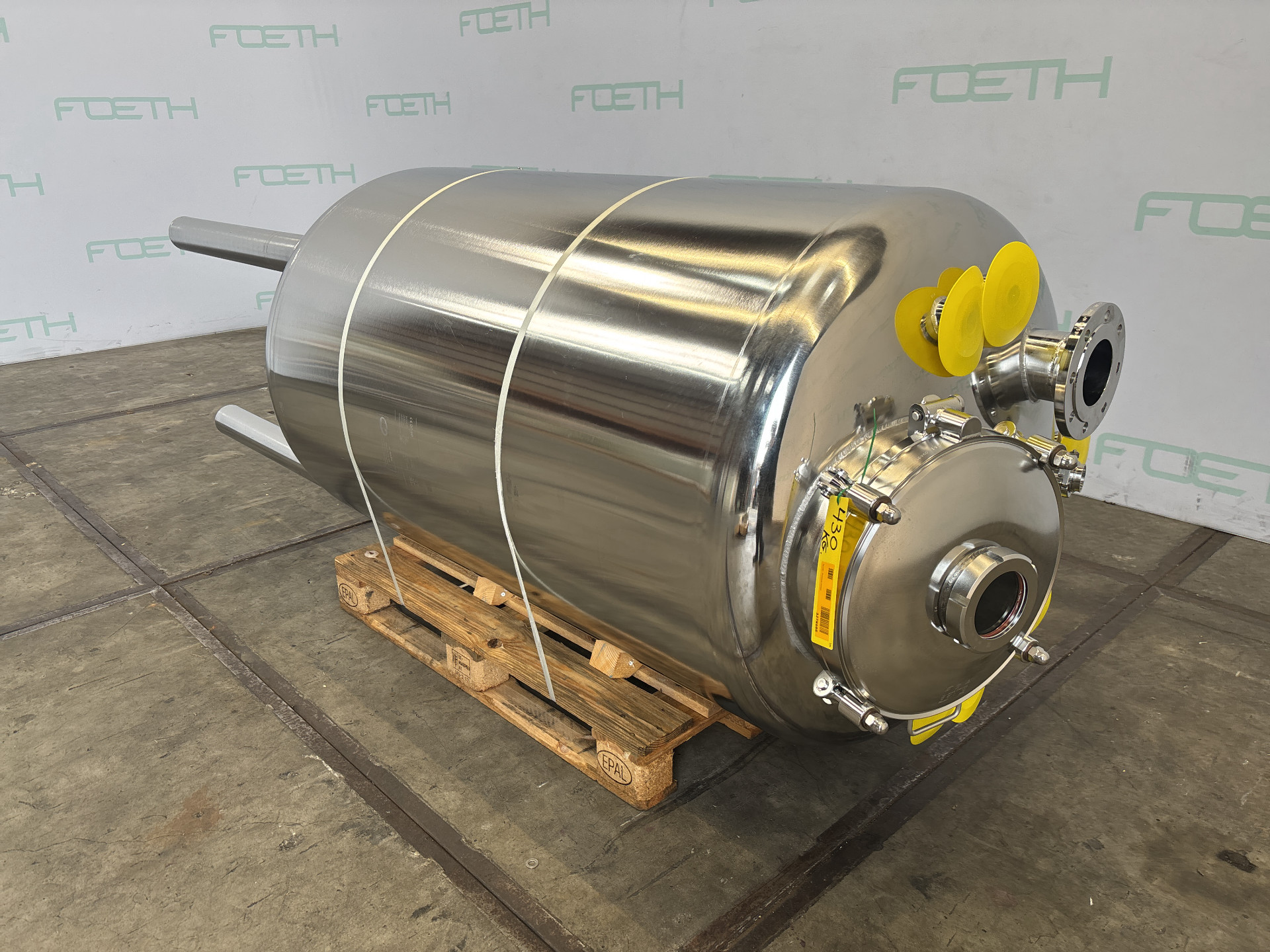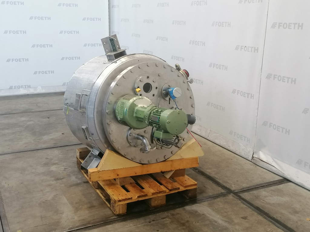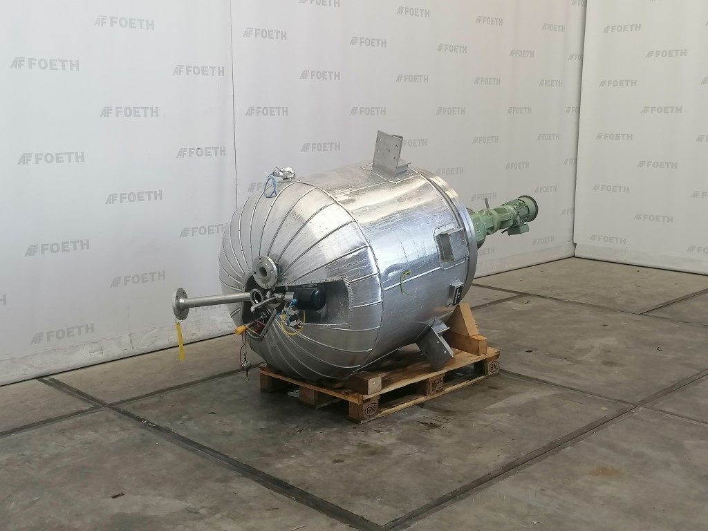 General SKU327X686 MakeM. Roth LocationBarneveld CEcheck Type1300 l. Pressure Working pressure4 Bar Vacuum possiblecheck Number of vertical pressure tanks1 Main Features MaterialStainless steel Volume1300 Ltr. Motor0.37 KW Pressure4 Bar Vacuumcheck Specified Features - Stirring vessel Closed stirring vesselcheck Capacity1300 l. Vessel sizesø 950 x 1800 mm Dished bottomcheck Dished top sidecheck ManholeDN400 Top connectionscheck Outletcheck DN25 with valve Max. temperature144 °C With propellor stirrercheck Motor0,37 kW, 220/380 V, 1350 rpm MaterialStainless steel 1.4404 (316L) Information No.B652 Year of construction2008 Mounted on legscheck Floorspace1,00 x 1,00 m Total height2,80 m Weight430 kgStirring vesselsNew arrivalsM.rothStirring vessels > Stirring vesselsNew arrivalsBrand > M.roth What you can expect from Foeth: -- Machine is in working condi ...