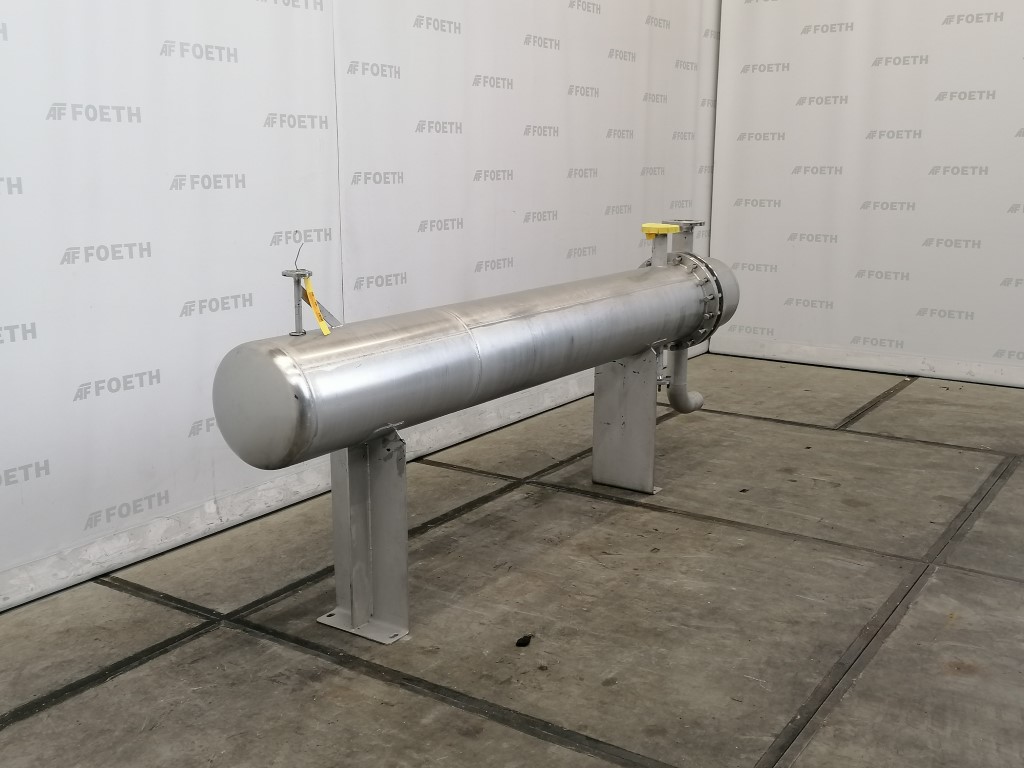 General SKUR0854 LocationBarneveld MakeZürcher AG (CH) Type35 m2 Pressure Working pressure shell6 Bar Working pressure tubes10 Bar Main Features Shell (Material)Stainless steel Tube (Material)Stainless steel Surface35 m2 Specified Features - Shell and tube heat exchanger MaterialStainless steel 1.4404 Heat exchangercheck Horizontalcheck Heating surface35 m2 Tube capacity164 ltr U-typecheck Number of tubes:122 Tube diameter16mm Tube lengthca 5400mm Wall thickness tubes1,0mm Max. temperature-30/200 degr.C Shell capacity206 ltr Shell diameter406mm Shell length3312mm Wall thickness shell4mm Max. temperature-30/200 degr. C Shell connectionsDN65 (2x), DN15 (1x) Cover connectionsDN100 (1x), dia. 100mm (1x) Information No.1886 Year of construction2002 Mounted on legscheck Floorspace3,7x0,6 M Total height1,3 M Weight750 KGOils & fatConsumer wastePaints & coa ...