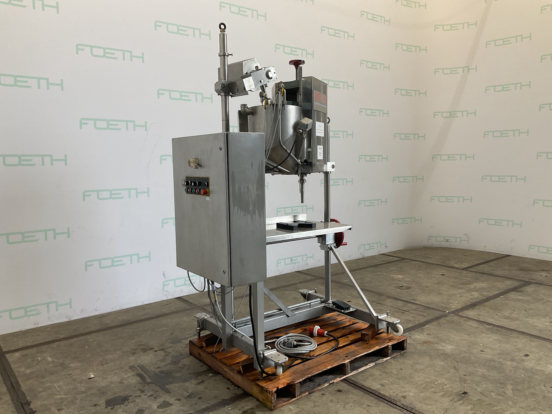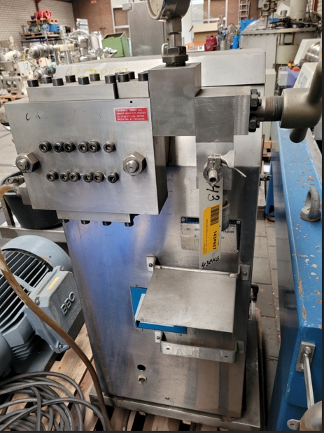 General SKU143P637 MakeGaulin Type30-30CD No.48810664 Year of constructionunknown LocationBarneveld Pressure Working pressure1000 Bar Main Features Capacity113 Ltr./Hr. Motor5.5 KW Pressure1000 Bar Specified Features - Piston homogeniser MaterialStainless steel Piston homogeniser(1x) Capacity113 l/h Number of pistons:3 Motor5,5 KW, 380 Volt (50 Hz) Information Floorspace0,9x0,7 M Total height1,5 M Weight430 KG Extra Specificationsincluding Alfa-Laval P20-HB plate heat exchanger 4 bar Technical specs Extra information15.000 PSIG (approx. 1000 Bar)Piston homogenisersDiscountGaulinMills > Piston homogenisersDiscountBrand > Gaulin What you can expect from Foeth: -- Machine is in working condition -- At a reduced price compared to new -- Ready for shipping to any destination worldwide -- You are welcome to inspect the machine in Barneveld, The Netherlands. Please vis ...