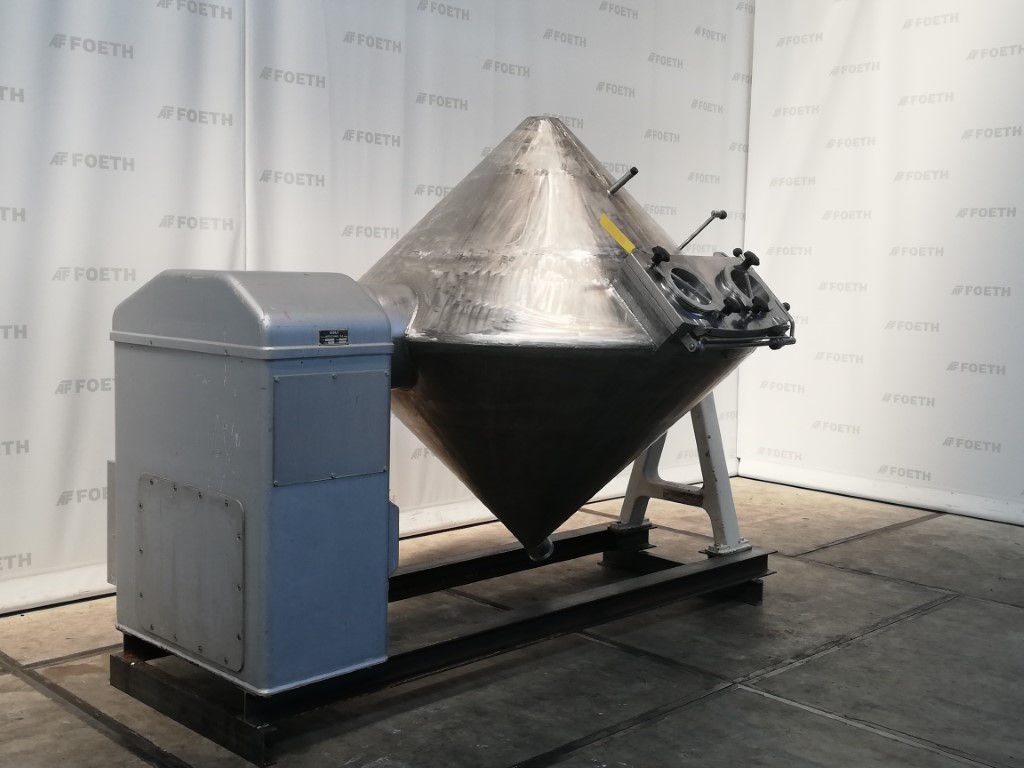 General SKUR0171 MakeEgli Butschwil (CH) LocationBarneveld TypeK.MI. Main Features MaterialStainless steel Volume2000 Ltr. Motor22 KW Specified Features - Tumbler mixer MaterialStainless steel 1.4401 (316) Double cone tumbler mixercheck Capacity2000 ltr Diameter1900mm Conical length950mm Inlet680x375mm Outletdia. 100mm With motor400/690 50 hz 22 kw 1470 rpm - 440/460 60 hz 25 kw 1765 rpm Information No.1-71 Year of construction1966 Floorspace3,1x2,2 M Total height2,7 M Weight2000 KgTea, herbs & coffeeSpicesTumbler mixersButschwilIndustries > Food & Feed > Tea, herbs & coffeeIndustries > Food & Feed > SpicesMixers > Tumbler mixersBrand > Butschwil What you can expect from Foeth: -- Machine is in working condition -- At a reduced price compared to new -- Ready for shipping to any destination worldwide -- You are welcome to inspect the machine in Barneveld, The Nethe ...