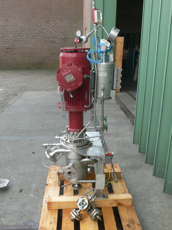 General SKU042B298 MakeCINC - Costner Industries Nevada Corporation TypeModel V5-HPHT (High Pressure High Temp.) No.05HPHT01 Year of construction2001 LocationBarneveld Main Features MaterialStainless steel Motor5.5 KW Specified Features - Separator SeparatorCentrifugal Separator (1x) Motor/drive unit make Fluid, type MD-55.22 Max. rotor speed3600 Rpm Mounted on stainl. steel framecheck MaterialStainless steel 1.4404 (316L) Information Floorspace0,6x0,6 M Total height1,7 M ATEX compatiblecheck Extra Specifications- Max. pressure 20 bar (test pressure 27,3 bar) - With jacket (I= 2,5 + 0,8 Ltr vacuum/16 bar, test pressure 22,1 bar) - Max. temperature 200 Degr. C. - Motor 5,5 KW, 400 Volt (Ex) - Capacity 6,5 Ltr - With mechanical seal SeparatorsDiscountCinc NevadaCentrifuges > SeparatorsDiscountBrand > Cinc Nevada What you can expect from Foeth: -- Machine is in working ...