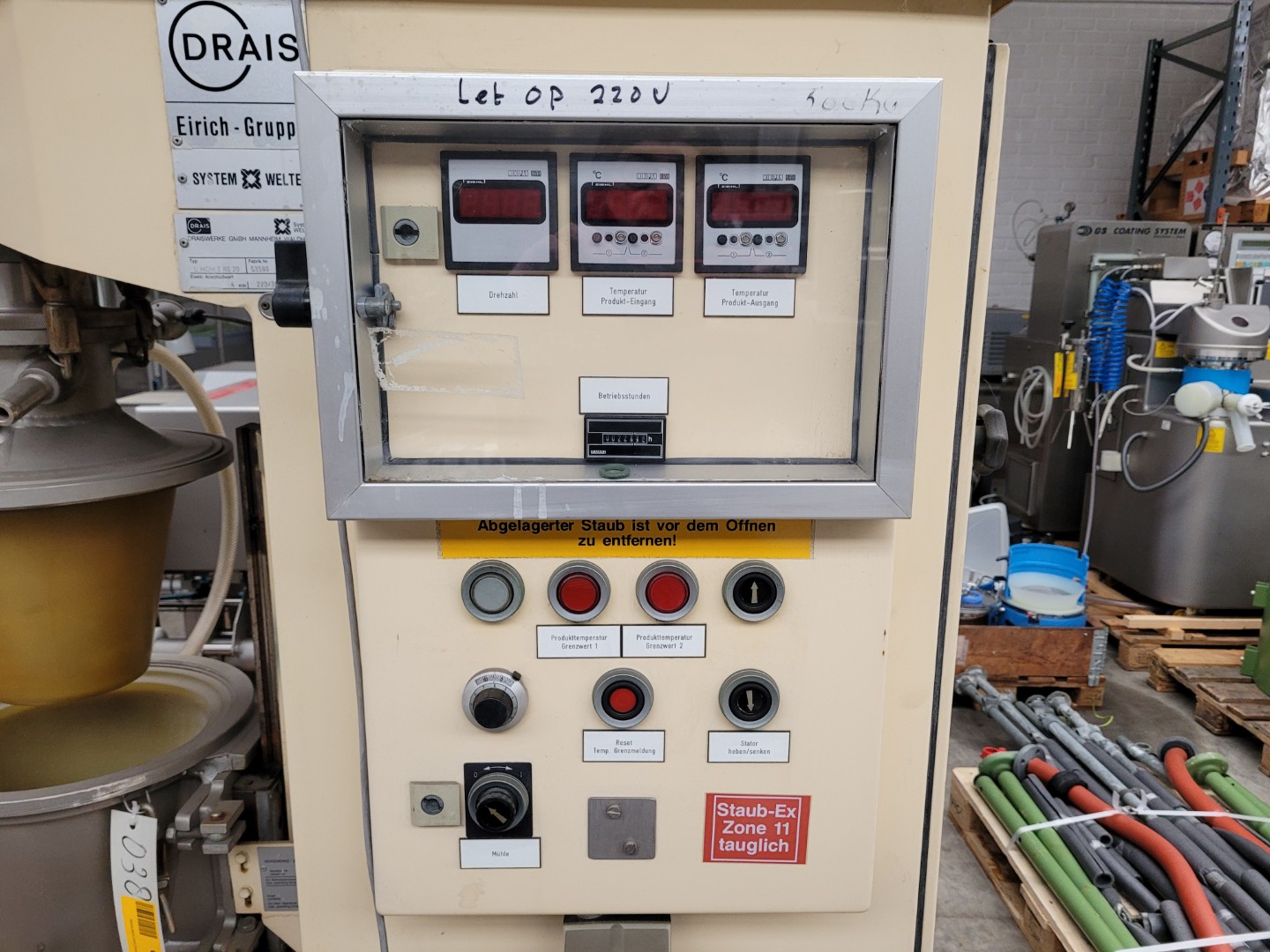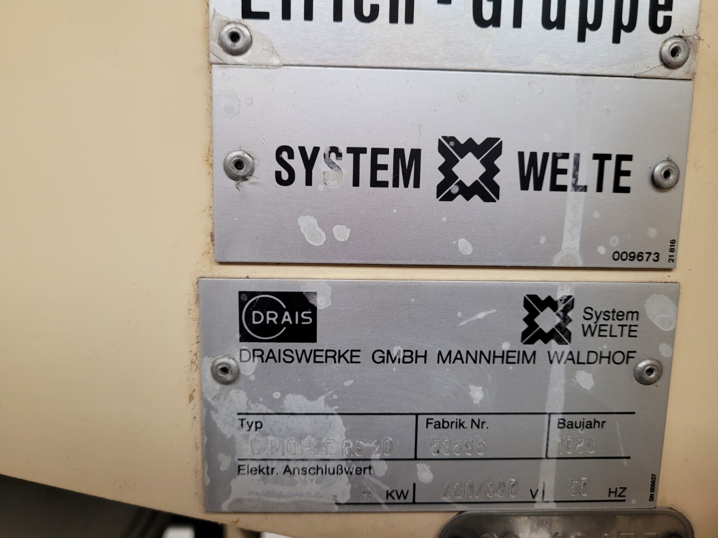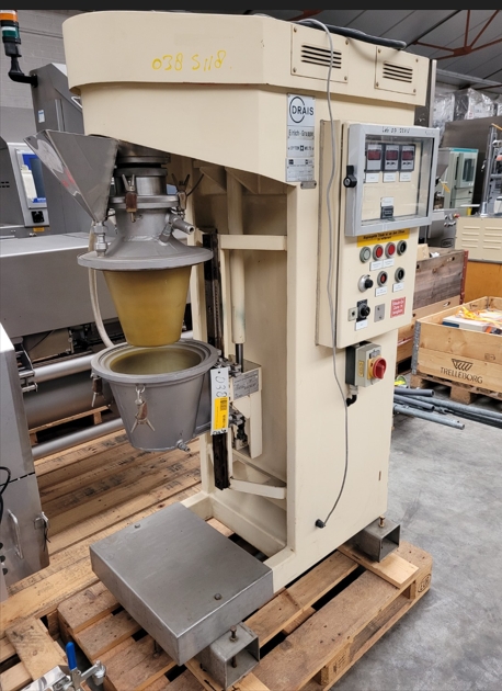 General SKU038S118 MakeDrais TypeU.Muehle RS20 (System Welte) No.53596 Year of construction1989 LocationBarneveld Specified Features - Sand mill Material finishCoating Pressure Working pressure jacket2 Bar Main Features MaterialCoated Volume8 Ltr. Motor4 KW Sand mills Vertical sandmill(1x) Capacity8 Ltr Housing dimensions Dia. 250-140x220mm With jacket(1,1 Ltr) Max. temperature80 Degr. C. Motor4 KW, 220/380 Volt with frequency controller Information With switchgearcheck Floorspace1,1x0,7 M Total height1,7 M Weight500 KG Extra SpecificationsRotor and grinding chamber are coated Technical specs Extra informationhouse: Dia. 250-140x220mmSand millsDiscountDraisMills > Sand millsDiscountBrand > Drais What you can expect from Foeth: -- Machine is in working condition -- At a reduced price compared to new -- Ready for shipping to any destination worldwide -- You ar ...