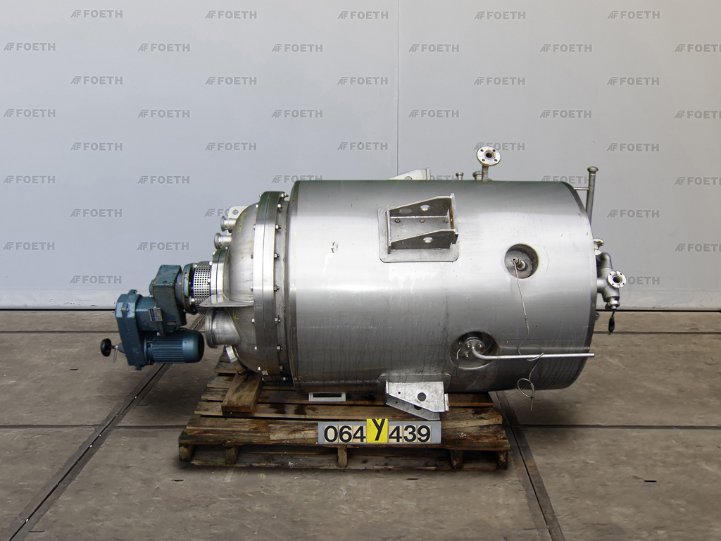 General SKU064Y439 MakeHoeksma & Velt Leeuwarden Year of construction1990 LocationBarneveld Pressure Working pressure0.5 Bar Working pressure jacket4 Bar Vacuum possible jacketcheck Main Features MaterialStainless steel Volume800 Ltr. Motor1.5 KW Specified Features - Stainless Steel Reactor Reactor(1x) Capacity800 Ltr Vessel sizesdia. 850x1250mm Dished bottomcheck Dished top sidecheck Top connectionsdia. 150mm + dia. 125mm + 6x dia. 50mm Outletdia. 80/40mm With jacketcheck Max. temperature100/200 Degr. C. (vessel/jacket) With paddle stirrerJongia, type LM-40 (Flat blade/Rushton mixer) Motor1,5 KW, 380 Volt Speed mixing shaftvariable Stainless Steel Reactors MaterialStainless steel 1.4301 (304) Information Floorspace1,4x1,4 M Total height2,8 MPaints & coatingsGeneric medicinesOintmentsFine chemicalsOther chemicalStainless Steel ReactorsRubberAgrochemicalsPla ...