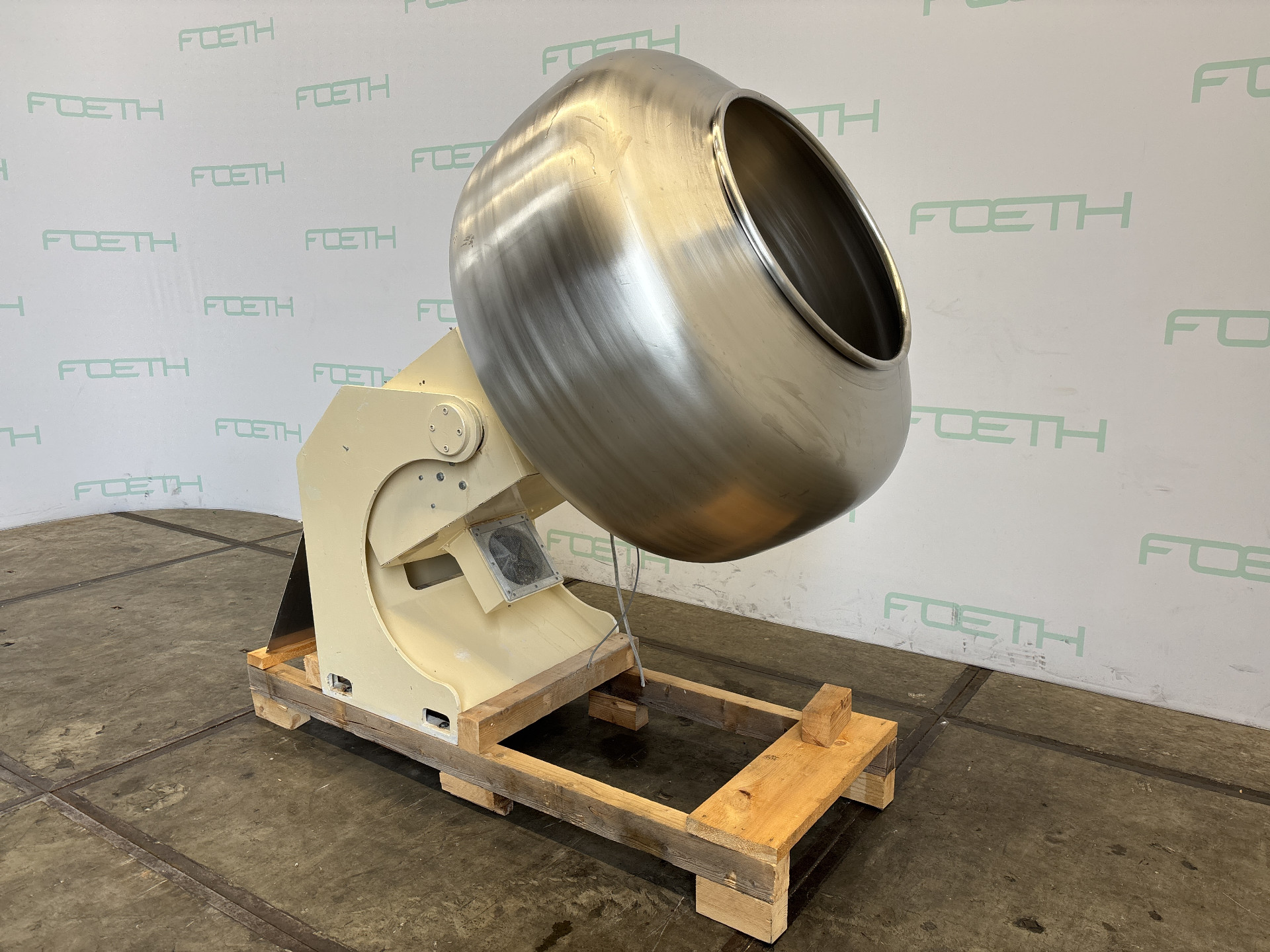 General SKU376X1178 LocationBarneveld MakeDriam Main Features MaterialStainless steel Motor1.5 KW Inlet diameter700 mm Specified Features - Coating pan MaterialStainless steel 1.4306 (304L) Coating pancheck Pan diameter1300 mm Pan depth800 mm In-/OutletDia. 700 mm Pan can be tiltedcheck Without motor1,5kW, 230/400V, 1395 rpm. Pan speed17 rpm. With fancheck Information Typedriapan Year of constructionunknown Floorspace1,3x1,8 m Total height1,9 m Weight620 kgCoating pansDriamCoating pans > Coating pansBrand > Driam What you can expect from Foeth: -- Machine is in working condition -- At a reduced price compared to new -- Ready for shipping to any destination worldwide -- You are welcome to inspect the machine in Barneveld, The Netherlands. Please visit us in Barneveld for many more machines!