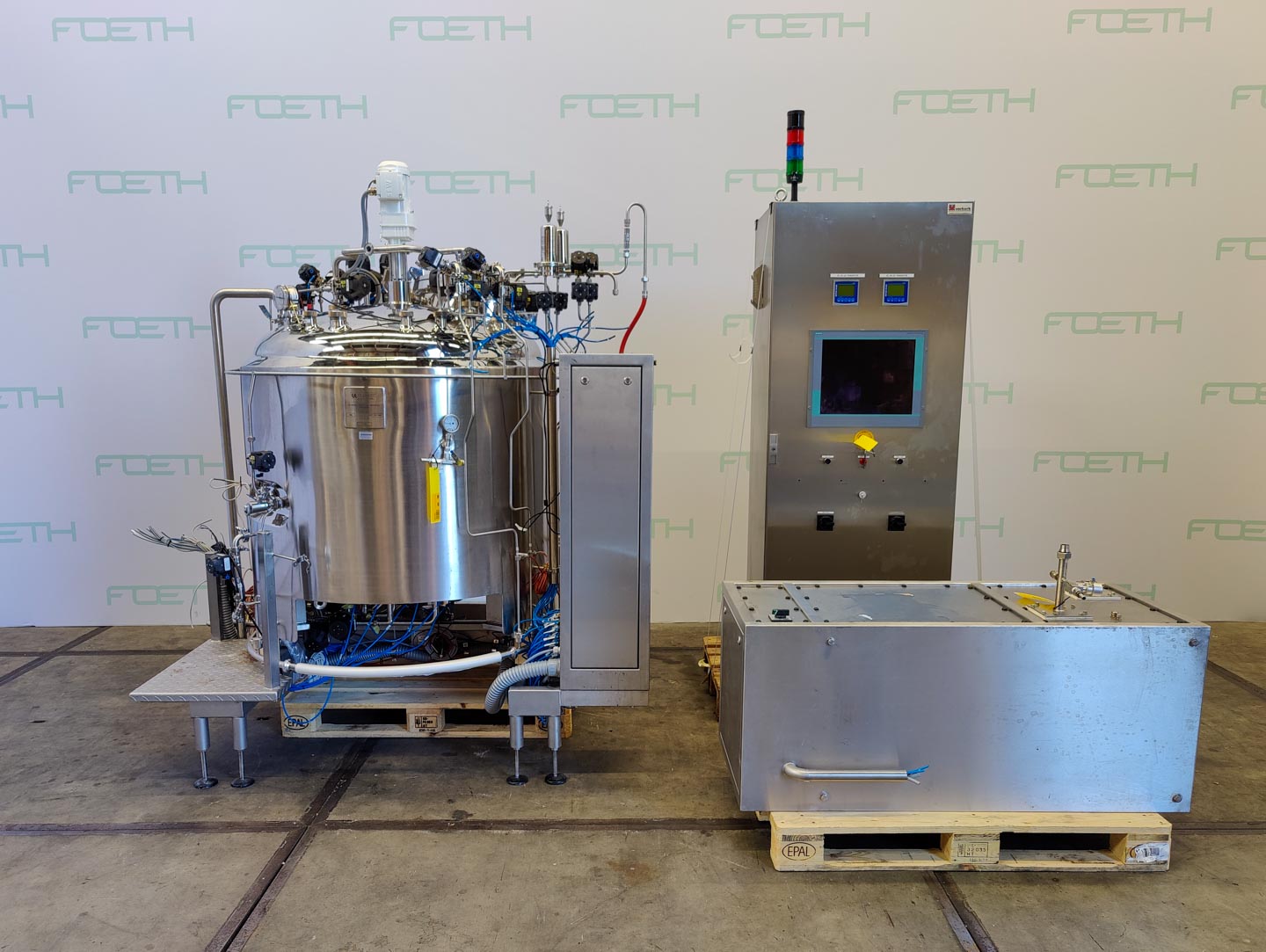 General SKULT012 LocationBarneveld CEcheck Pressure Working pressure3 Bar Vacuum possiblecheck Working pressure jacket6 Bar Vacuum possible jacketcheck Main Features MaterialStainless steel Volume350 Ltr. Motor0.09 KW Specified Features - Stainless Steel Reactor MaterialStainless steel 1.4404 (316L) Stainless Steel Reactors Reactorcheck Capacity(3x) 7Ltr., 20 Ltr., (2x) 80 Ltr., 120 Ltr., 190 Ltr., 350 Ltr. With jacketcheck Max. temperature-10/95 °C With propellor stirrerMagnetic ZETA, Type: BMRT Motor0.09 kW, 230-400 Volt, (Ex) Information MakePharmatec GmbH/ Syntegon Technology / Pepperl+Fuchs Year of construction2021 Mounted on legscheck With switchcheck With switchgearcheck ATEX compatiblecheck Extra Specifications Download full specifications of this line here. Download (.foeth/pub/media/wysiwyg/PDF/LT.pdf) 4 NEW/NEVER USED IMMEDIATELY AVAILABLE FROM A ...