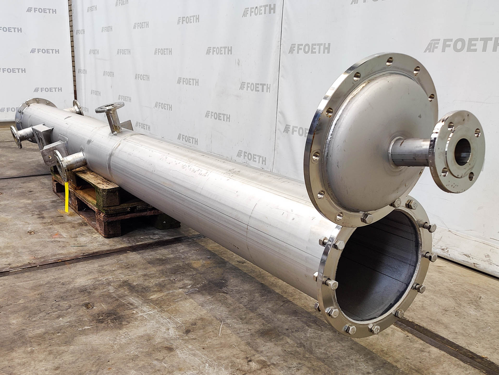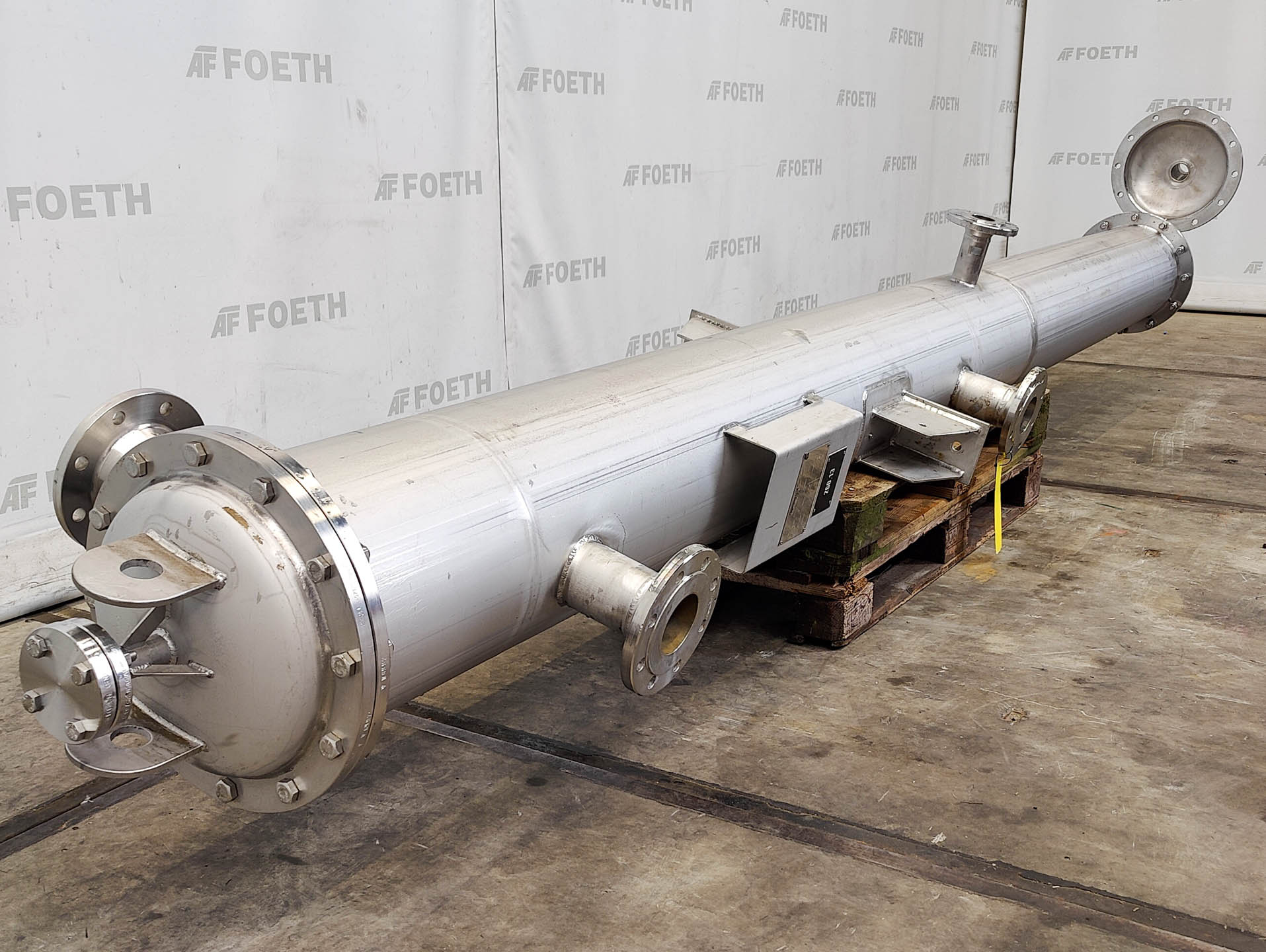 General SKU212T508 MakeApparatebau AG TypeNachkondensator 260.13 No.W6992 Year of construction2001 LocationBarneveld Pressure Working pressure shell6 Bar Working pressure tubes3.2 Bar Main Features Shell (Material)Stainless steel Tube (Material)Stainless steel Surface8 m2 Specified Features - Shell and tube heat exchanger MaterialStainless steel 1.4571 (316Ti) Heat exchangercheck Verticalcheck Notified body(TÜV) Heating surface8 m² Tube capacity222 Ltr. Max. temperature-10/200 °C Shell capacity68 Ltr. Shell diameter315 mm Shell length4000 mm Max. temperature-10/200 °C Information Floorspace4,5x0,3 m Total height0,5 m Weight330 kgOils & fatConsumer wastePaints & coatingsPowdered foodsGeneric medicinesOintmentsTea, herbs & coffeeFine chemicalsStarchOther chemicalRubberBiotechnologyAgrochemicalsSpicesPlastic & polymersShell and tube heat exchangersCatalysts ...