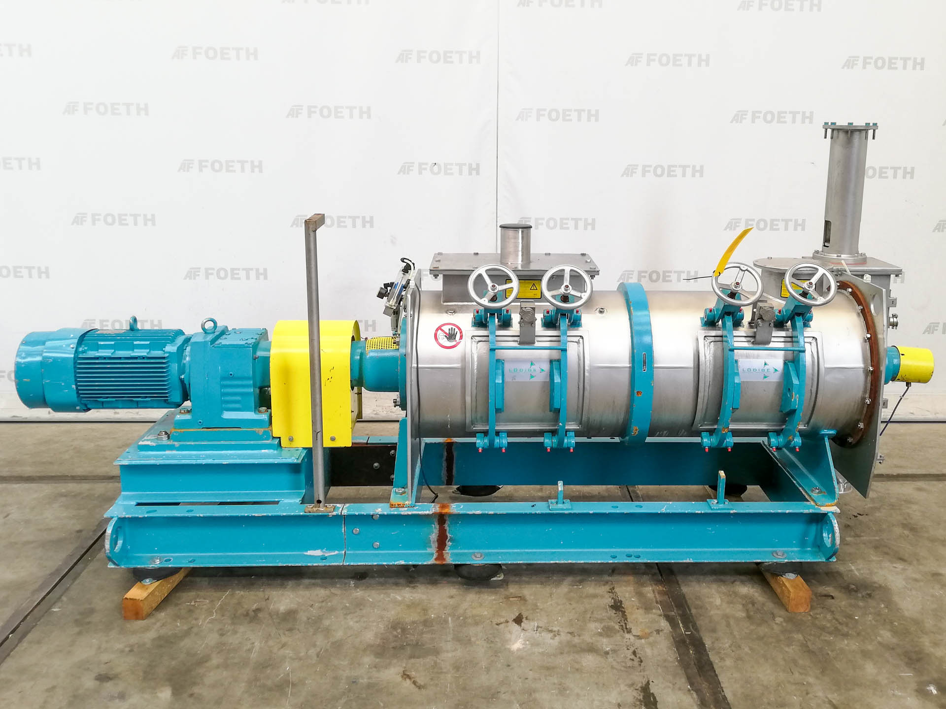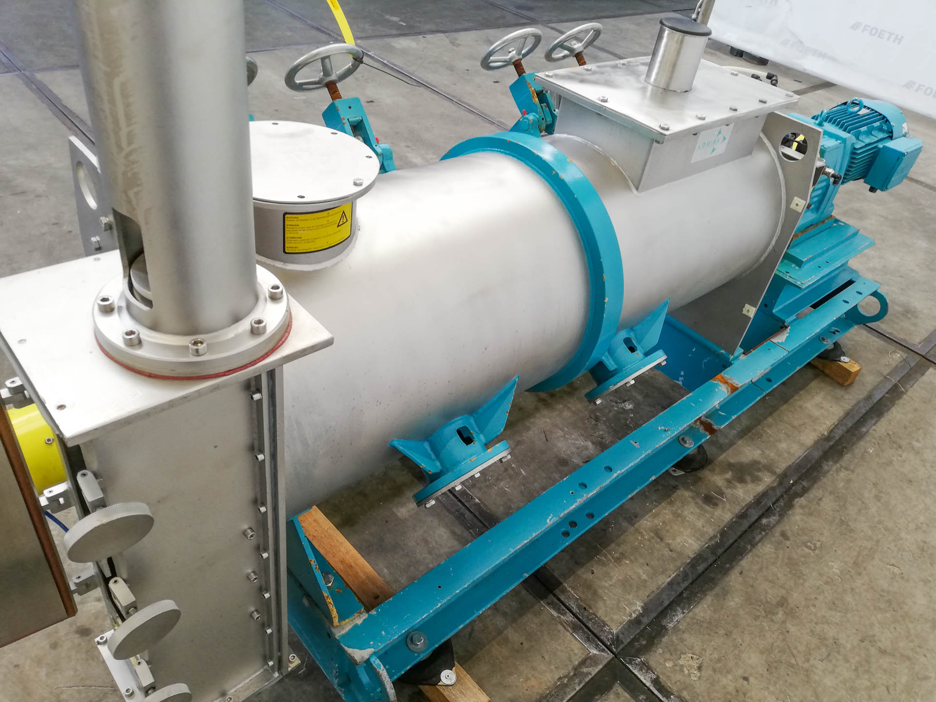 General SKU286T653 MakeLoedige LocationBarneveld TypeKM300D Main Features MaterialStainless steel Volume300 Ltr. Motor11 KW Specified Features - Powder turbo mixer MaterialStainless steel Powder turbo mixers Paddle mixercheck Continuous mixercheck Useful capacity100-210 Ltr. Inlet460x230 mm Manhole450x170 mm Outlet200x80 mm Glands air purgedcheck Motor11 kW 380-420/660-725 Volt Speed mixing shaft160 rpm Information No.11450 Year of construction1988 Mounted on framecheck Floor space3,2x1 m Total height1,5 m Weight1050 kgPowdered foodsGeneric medicinesTea, herbs & coffeeStarchOther chemicalSpicesCatalysts & fillersFeed additivesPowder turbo mixersOther pharmaceuticsCosmeticsFood additivesSugarAnimal feedOther feedConfectionerySolid pharmaceuticsDyes & pigmentsMinerals & inorganicLoedigeIndustries > Food & Feed > Powdered foodsIndustries > Pharmaceutical > Generi ...