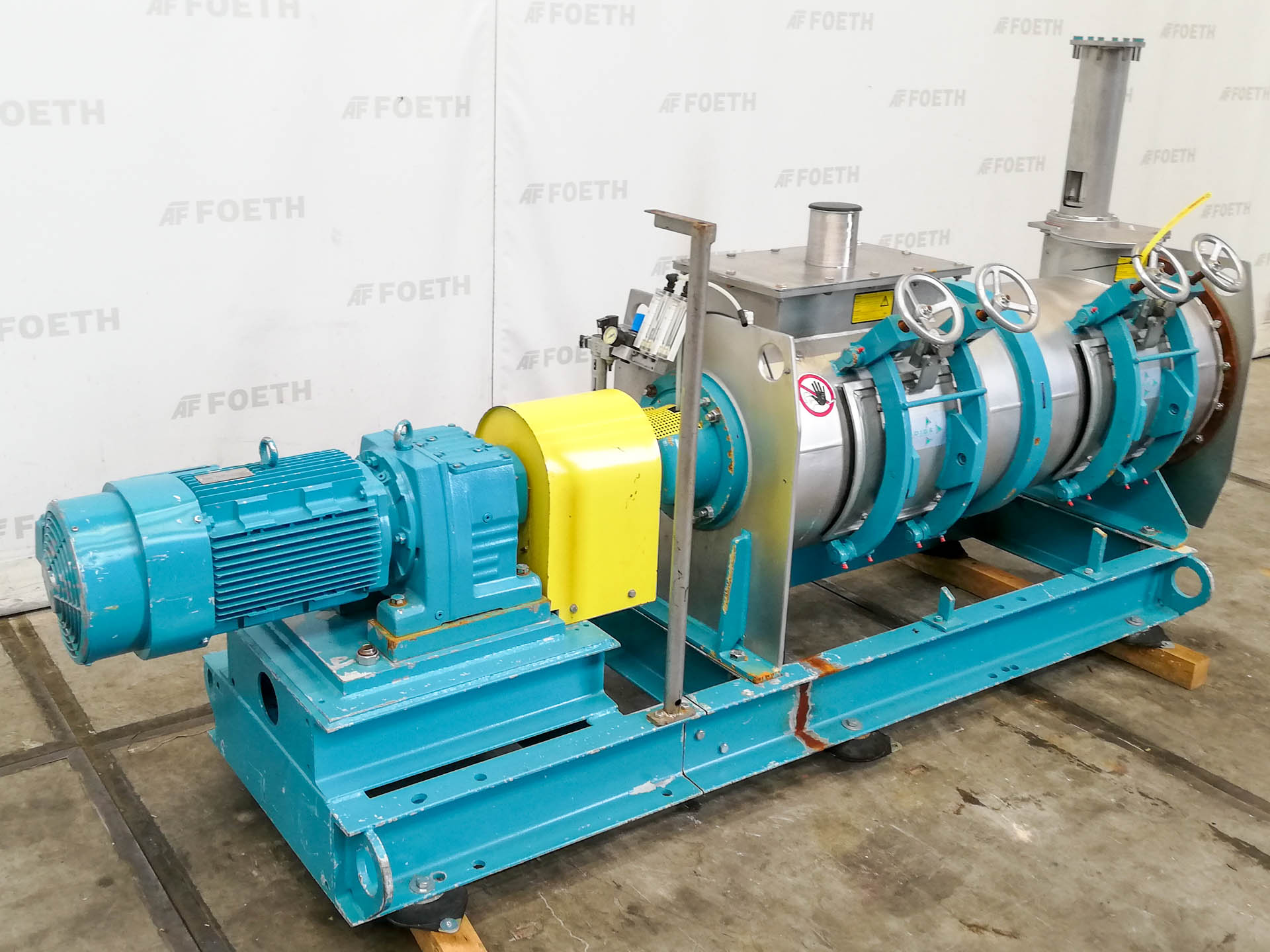 General SKU325U779 MakeFluid LocationBarneveld TypeWBS Main Features MaterialStainless steel Motor14 KW Specified Features - Dissolver Dissolvercheck Shaft length600 mm Disc diameter350 mm Between shaft and frame320 mm Motor14 kW 400/690 Volt (Ex) With variable speed drivecheck (motor: 0,075 kW, 400 Volt (Ex)) Speed mixing shaft60-363 rpm With mechanical liftingcheck Motor+/- 0,75 kW MaterialChromed steel, Stainless steel 1.4571 (316Ti) Information No.01617.20.2 Year of construction1996 With switchcheck With switchgearcheck(as is) Floorspace1,5x1,2m Total height3,5m Weight1030kg ATEX compatiblecheckOils & fatPaints & coatingsOintmentsFine chemicalsOther chemicalCatalysts & fillersSolventsDetergent & surf.Other pharmaceuticsLubricants & oleoOther feedDyes & pigmentsMinerals & inorganicDissolversFluidIndustries > Food & Feed > Oils & fatIndustries > Chemical > P ...