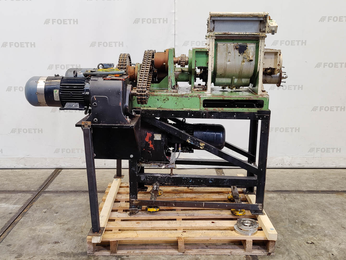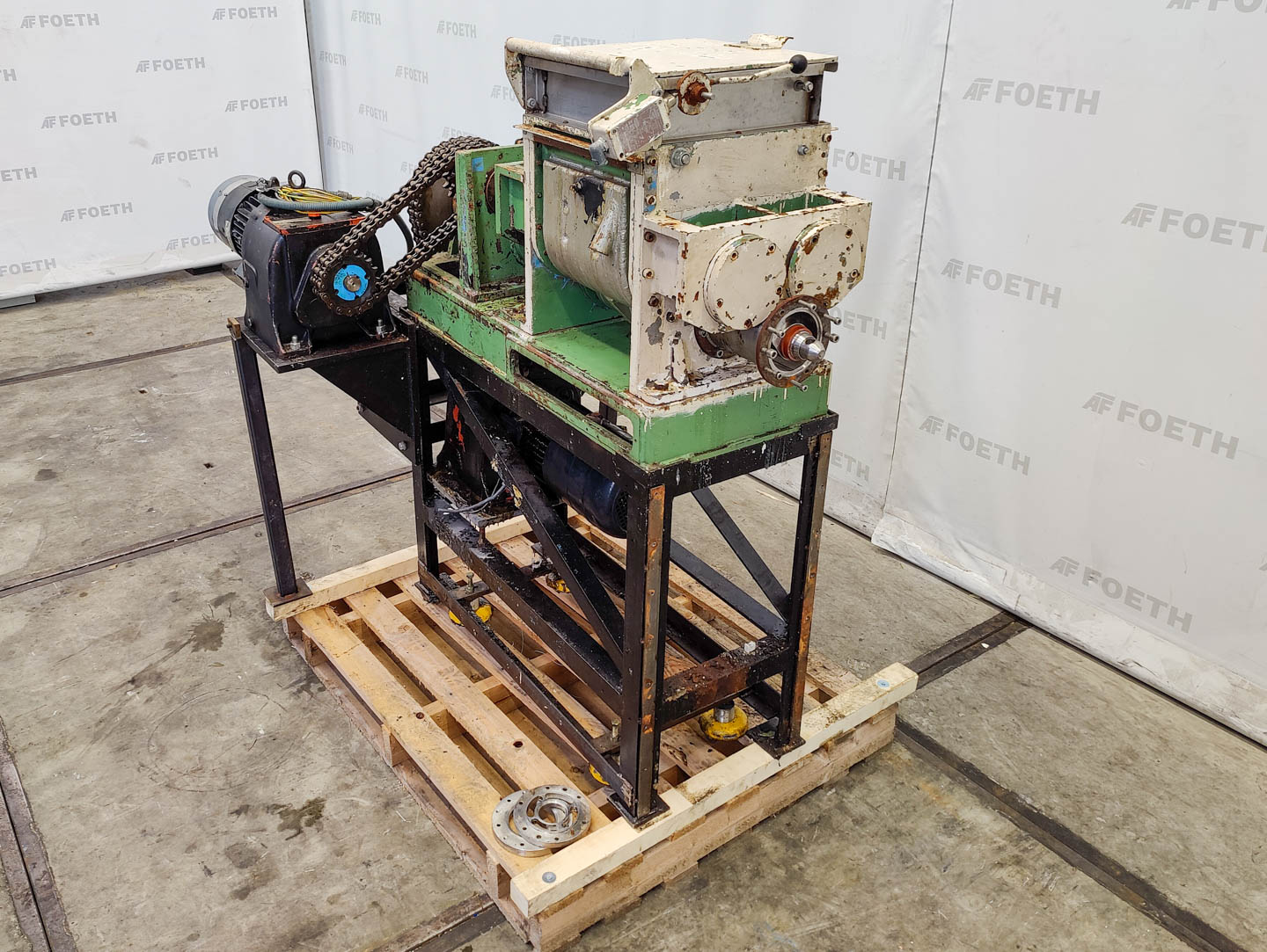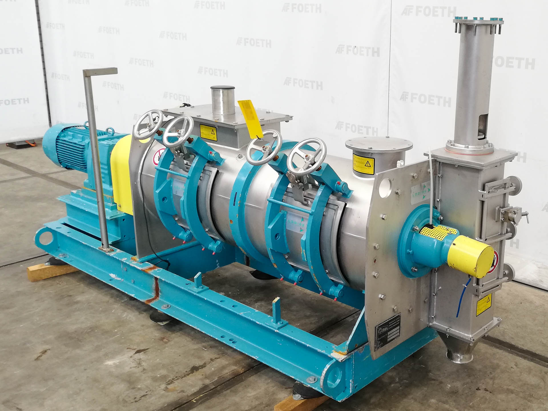 General SKU310T741 LocationBarneveld Main Features MaterialStainless steel Volume20 Ltr. Motor3 KW Specified Features - Z-blade mixer Z-blade mixercheck (mixtruder) Capacity20 ltr. Trough sizes355x355x420 mm With covercheck With jacketcheck Double gearedcheck With adjustable packing glandscheck Motor3,0 kW 315 Volt (2x) Arm speed33 rpm Screw dischargecheck (mixtruder) Motor3,0 kW MaterialStainless steel Information MakeWinkworth Typeunknown missing type plate Mounted on framecheck Floorspace1,3x1,6 m Total height1,6 m Weight1250 kgOils & fatPaints & coatingsPowdered foodsZ-blade mixersStarchOther chemicalRubberPlastic & polymersCatalysts & fillersFeed additivesPaper & otherDetergent & surf.Other pharmaceuticsCosmeticsSugarLubricants & oleoAnimal feedOther feedSolid pharmaceuticsDyes & pigmentsMinerals & inorganicWinkworthIndustries > Food & Feed > Oils & fatInd ...