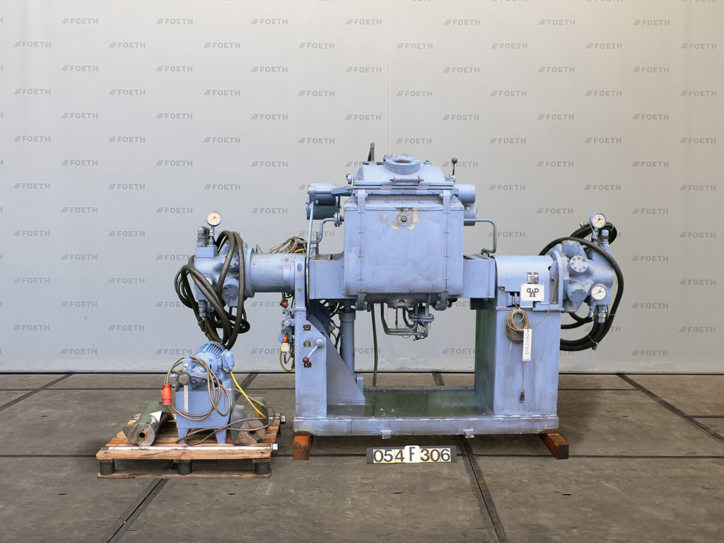 General SKU054F306 MakeWerner & Pfleiderer Stuttgart TypeUK-80 K4UH No.163 258 / 483 188 Year of construction1979 LocationBarneveld Pressure Working pressure2 Bar Vacuum possiblecheck Working pressure jacket10 Bar Main Features MaterialStainless steel Volume80 Ltr. Specified Features - Z-blade mixer Z-blade mixer(1x) Capacity170 Ltr, Useful capacity 80 Ltr Trough sizes515x525x600mm With covercheck With jacketcheck Max. temperature350 Degr. C. Double geared(hydraulic driven, power pack is missing) With adjustable packing glandscheck Hydraulic tiltingcheck With hydraulic unitcheck Motor2,0 KW, 220/380 Volt MaterialStainless steel 1.4571 (316Ti) Information Mounted on foundationcheck Floorspace2,8x1,2 M Total height1,9 M Weight2450 KG Extra Specifications- With additional set masticator arms Oils & fatPaints & coatingsPowdered foodsZ-blade mixersStarchOther ...