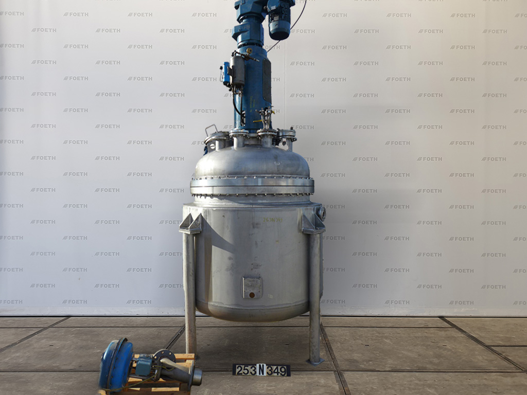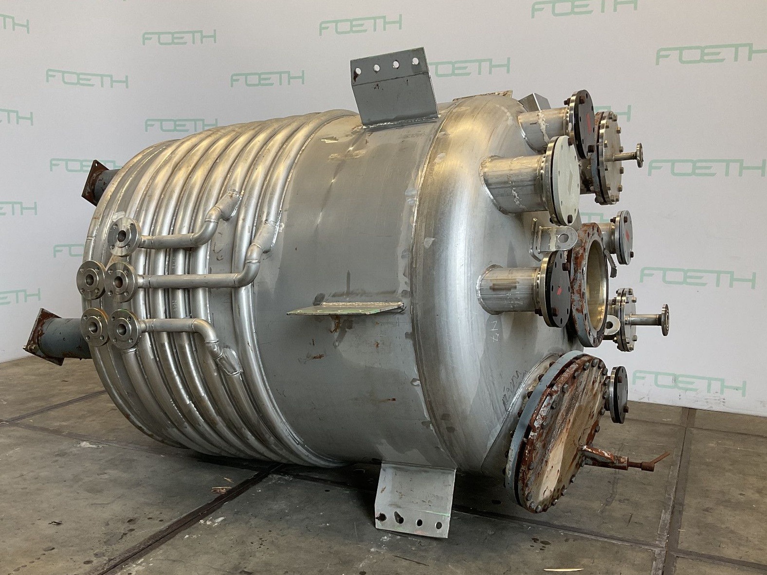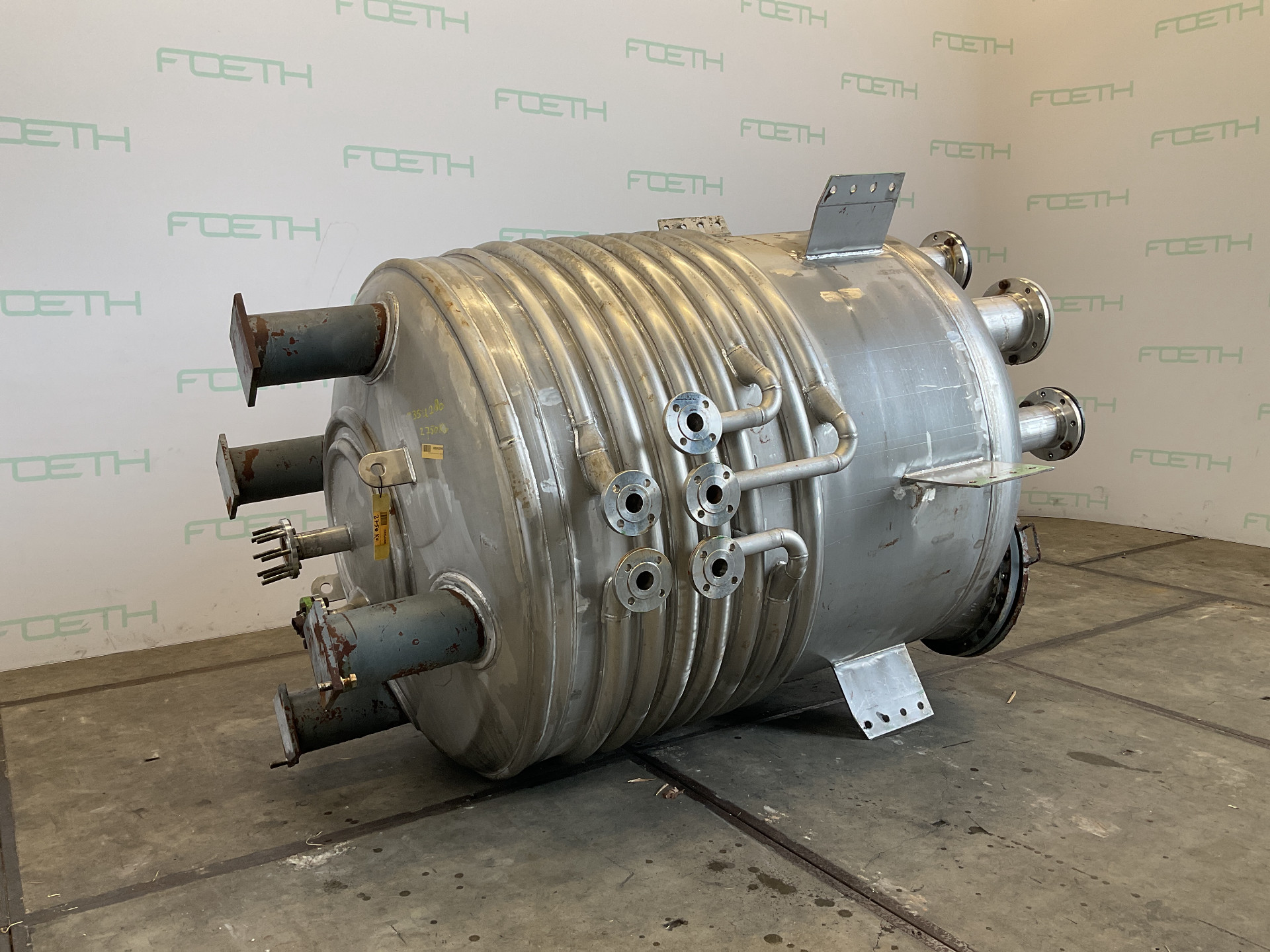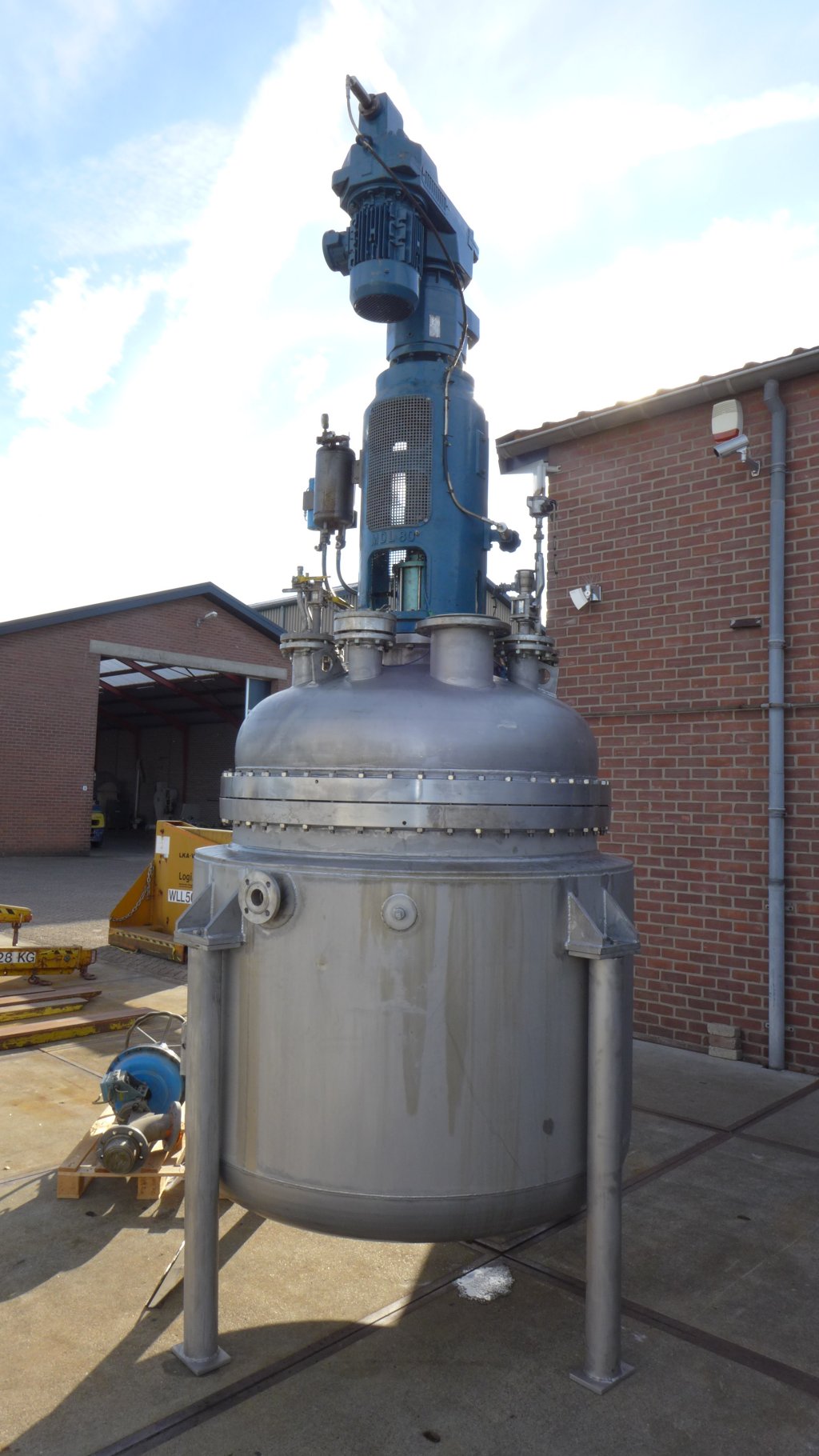 General SKU035U280 MakeBehälter, Apparate- u. Maschinenbau, Kürten No.6380-2 Year of construction1989 Mounted on legscheck Pressure Working pressure6 Bar Vacuum possiblecheck Working pressure jacket32 Bar Vacuum possible jacketcheck Main Features MaterialStainless steel Volume5750 Ltr. Specified Features - Stainless Steel Reactor Reactor(1x) Capacity5750 Ltr Vessel sizesdia. 1800x1750mm Dished bottomcheck Dished top sidecheck Manholedia. 600mm Top connectionsdia. 300mm + 2x dia. 200mm + 3x dia. 150mm Outletdia. 100mm Half coil jacketed(150 Ltr) Max. temperature250 Degr. C. Without motorand without stirrer Stainless Steel Reactors MaterialStainless steel 1.4571 (316Ti) Information LocationBarneveld Floorspace2,30x2,30 m Total height3,2 M Weight2750 kgPaints & coatingsGeneric medicinesOintmentsFine chemicalsOther chemicalStainless Steel ReactorsRubberAgro ...