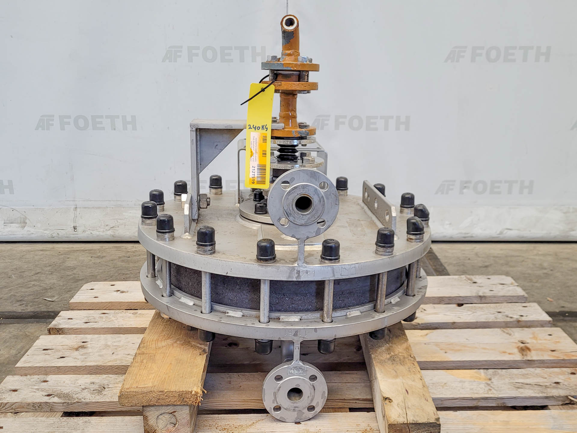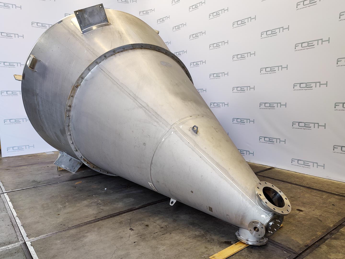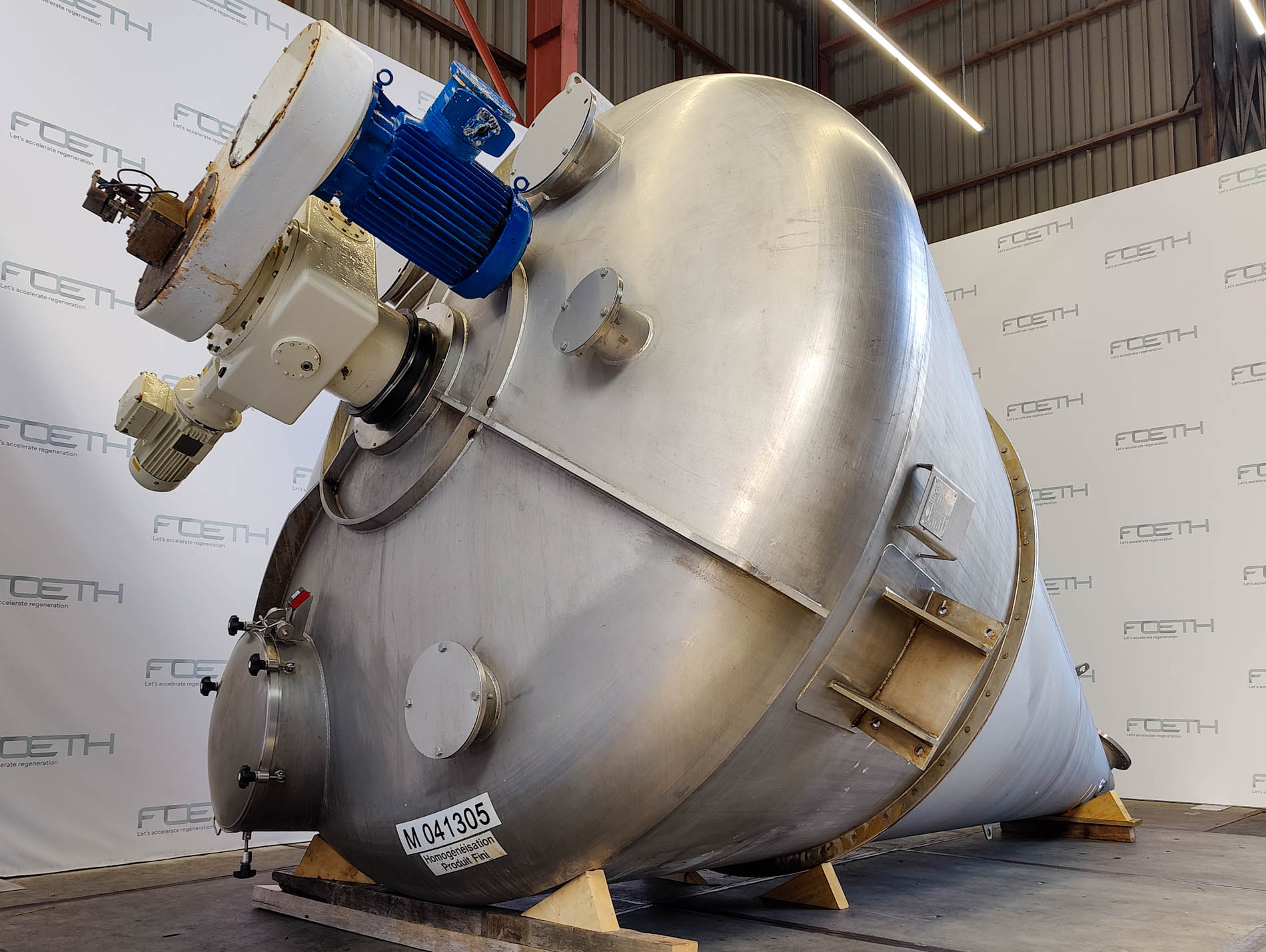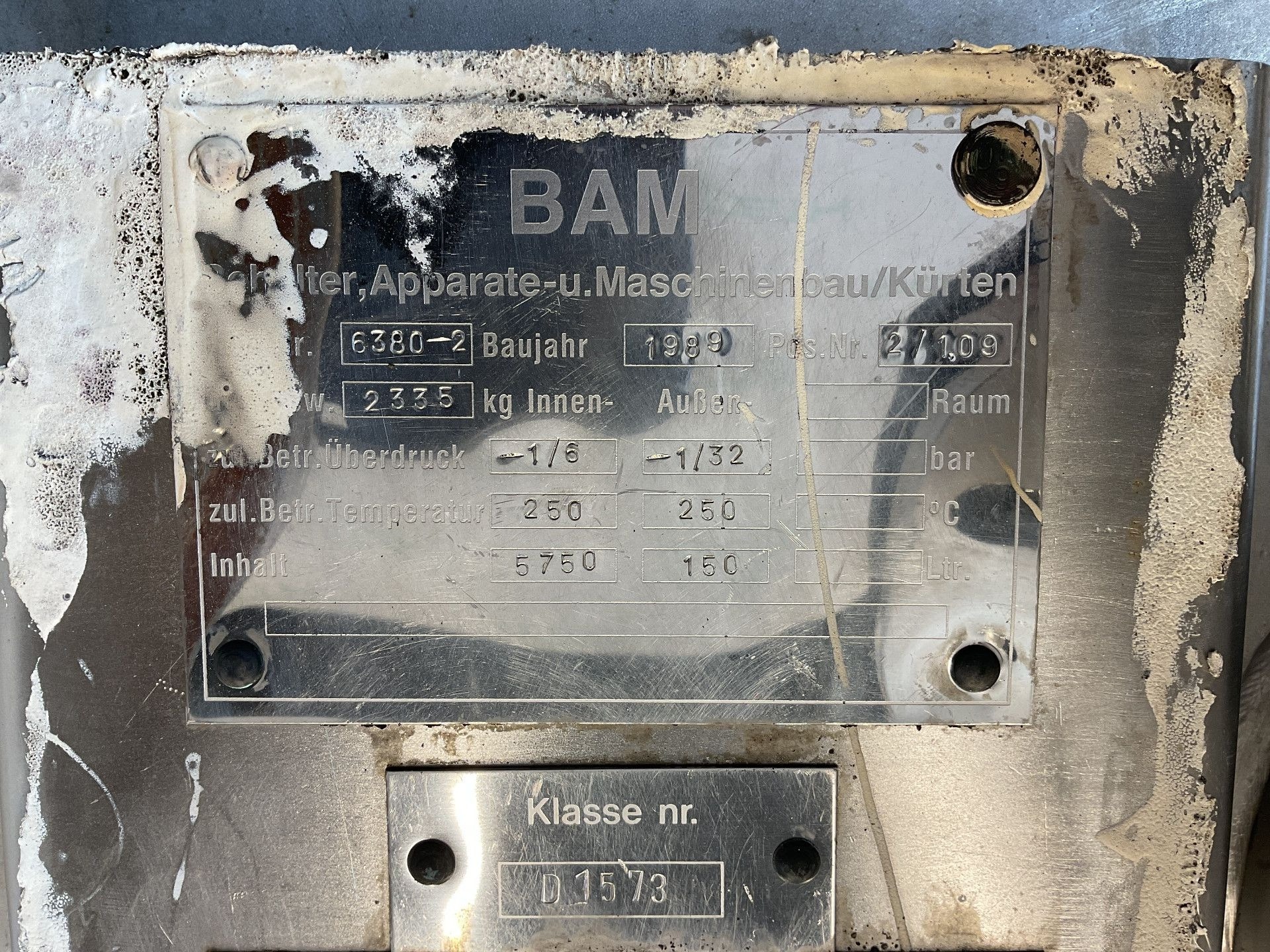 General SKU035U280 MakeBehälter, Apparate- u. Maschinenbau, Kürten No.6380-2 Year of construction1989 Mounted on legscheck Pressure Working pressure6 Bar Vacuum possiblecheck Working pressure jacket32 Bar Vacuum possible jacketcheck Main Features MaterialStainless steel Volume5750 Ltr. Specified Features - Stainless Steel Reactor Reactor(1x) Capacity5750 Ltr Vessel sizesdia. 1800x1750mm Dished bottomcheck Dished top sidecheck Manholedia. 600mm Top connectionsdia. 300mm + 2x dia. 200mm + 3x dia. 150mm Outletdia. 100mm Half coil jacketed(150 Ltr) Max. temperature250 Degr. C. Without motorand without stirrer Stainless Steel Reactors MaterialStainless steel 1.4571 (316Ti) Information LocationBarneveld Floorspace2,30x2,30 m Total height3,2 M Weight2750 kgPaints & coatingsGeneric medicinesOintmentsFine chemicalsOther chemicalStainless Steel ReactorsRubberAgro ...