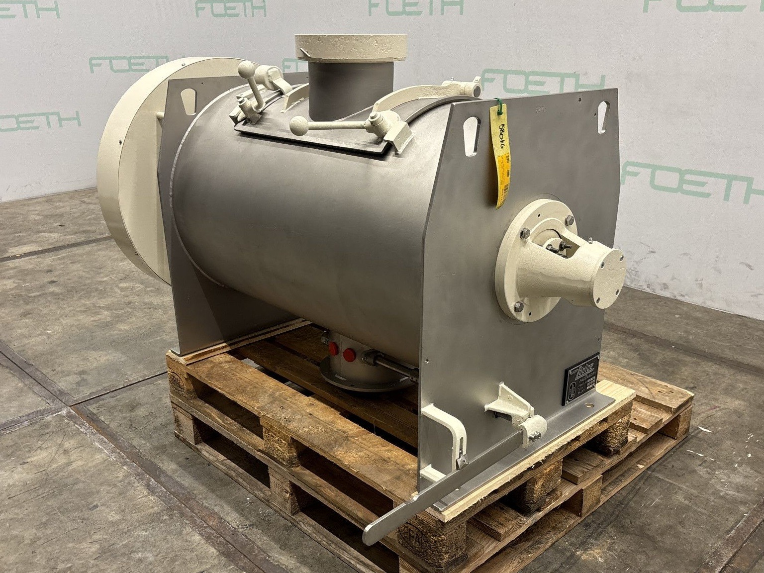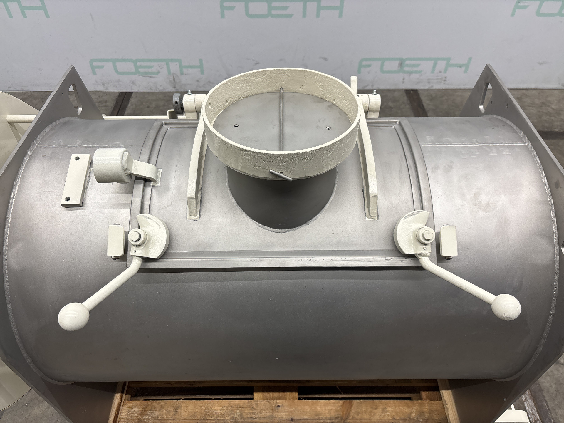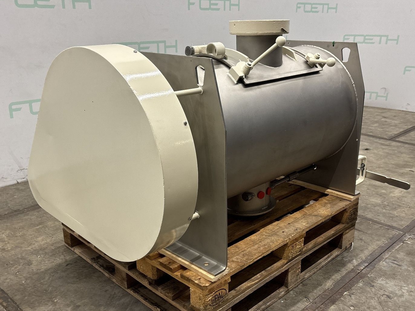General SKU264T469 MakeLoedige TypeFM300 D1MZ No.6275 Year of construction1972 LocationBarneveld Main Features MaterialStainless steel Volume300 Ltr. Motor7.5 KW Specified Features - Powder turbo mixer Powder turbo mixercheck Useful capacity300 l Trough sizesø 600 x 1000 mm Inletø 250 mm Inspection hatch320 x 520 mm Outlet250 mm With adjustable packing glandscheck Speed mixing shaft150 rpm With lump breakercheck Motor7,5 kW 400 V, 2880 rpm Speed lumpbreaker2880 rpm MaterialStainless steel 1.4552, Stainless steel 1.4306 (304L) Information Floorspace1,6 x 1,2 m Total height1,2 m Weight750 kgPowdered foodsGeneric medicinesTea, herbs & coffeeStarchReconditionedOther chemicalSpicesCatalysts & fillersFeed additivesPowder turbo mixersOther pharmaceuticsCosmeticsFood additivesSugarAnimal feedOther feedConfectionerySolid pharmaceuticsDyes & pigmentsMinerals & inorgan ...