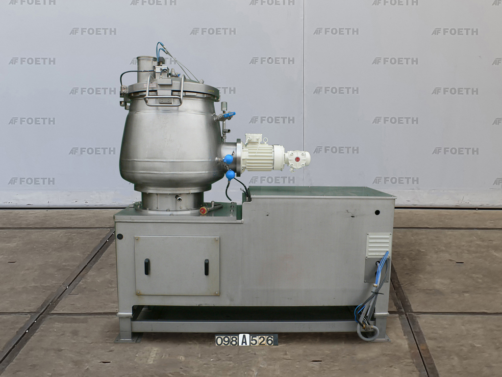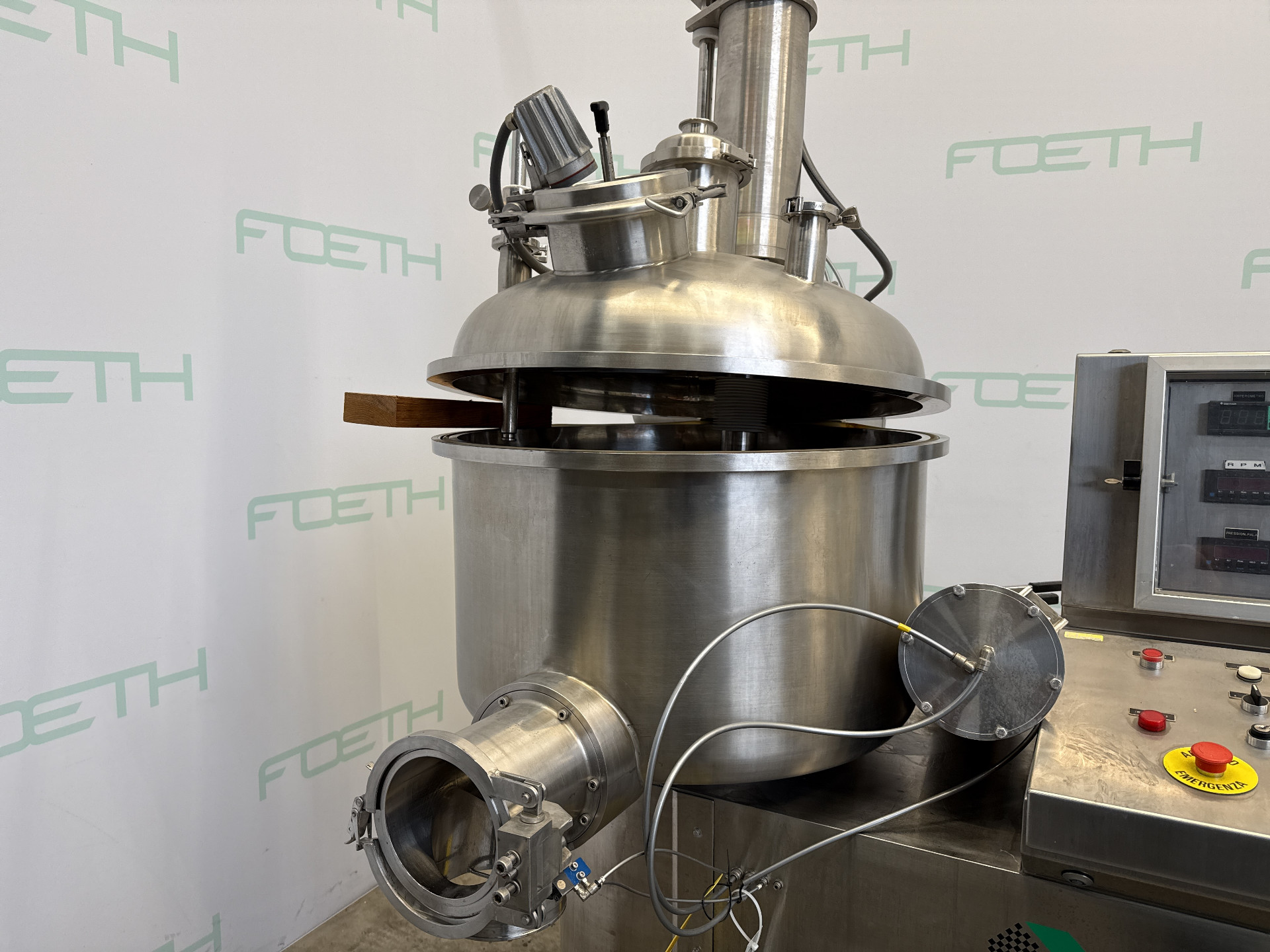 General SKU066E306 MakeKrauss Maffei TypeRTD-30 / RTC-60 No.91085/1 (KM order 361 704/1) Year of construction1992 Mounted on framecheck Pressure Working pressure6 Bar Vacuum possiblecheck Working pressure jacket25 Bar Main Features MaterialStainless steel Volume40 Ltr. Motor18.5 KW Specified Features - Paddle dryer Paddle dryerReactotherm (1x) Capacity40 Ltr. Trough sizesdia. 270x650mm Inletdia. 150mm Outletdia. 40mm With jacketcheck5+4,6 Ltr Shaft can be heatedcheck 0,5 Ltr. Max. temperature400°C. With adjustable packing glandscheck Motor18,5kW, 400 Volt MaterialStainless steel 1.4571 (316Ti) Information LocationBarneveld Floorspace3,3x1,4 M Total height3,5 M Weight2000 KG Extra SpecificationsWith filter type MF 0,5 m2 Powdered foodsGeneric medicinesOintmentsFine chemicalsStarchOther chemicalBiotechnologyAgrochemicalsCatalysts & fillersFeed additivesDis ...