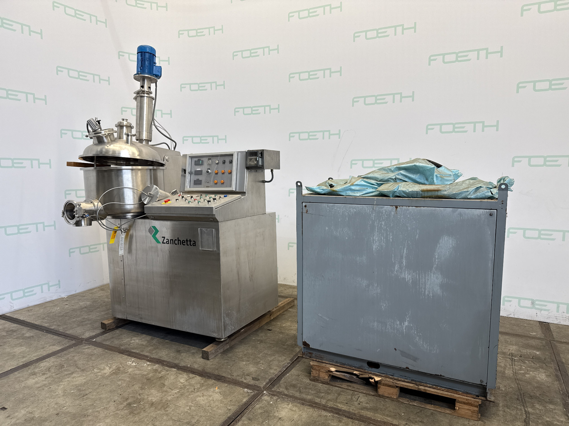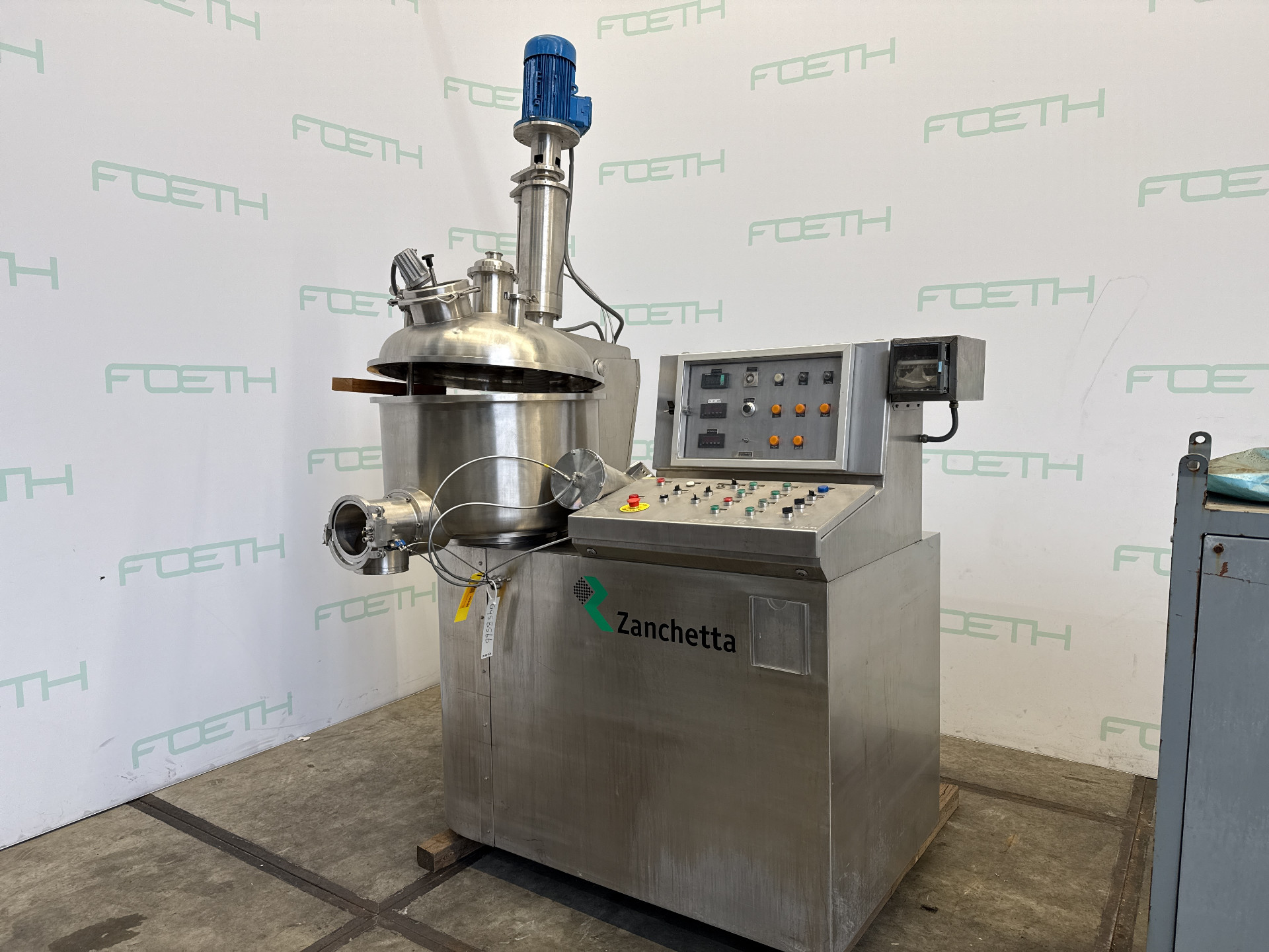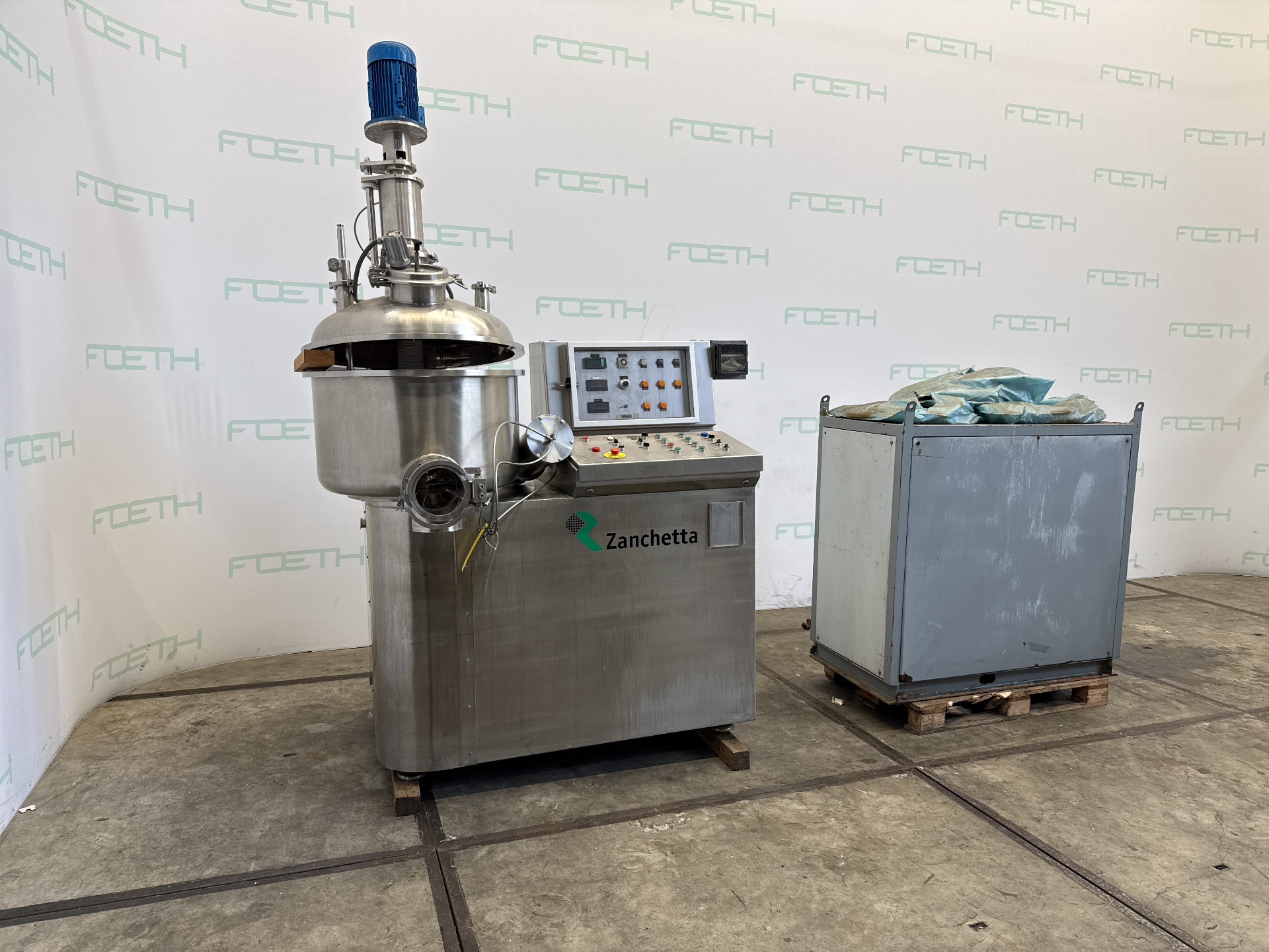 General SKU095B566 MakeZanchetta TypeRoto Mix 120 Year of constructionunknown LocationBarneveld Main Features MaterialStainless steel Volume120 Ltr. Motor18.5 KW Specified Features - Universal mixer Universal mixerHigh shear mixer (1x) Capacity120 Ltr Vessel sizesdia. 750x440mm With covercheck InletDia. 50mm (2x) Pneumatic operated outletcheck Outletdia. 100mm With motorHydraulically driven With variable speed drivecheck With lump breakercheck With motor1,5 KW, 220/380 Volt Rotor speed± 950 Rpm MaterialStainless steel 1.4552, Stainless steel 1.4301 (304) Information With switchcheck Floorspace2,0x1,9 m Total height3,0 m Weight1250 kg Extra Specifications- With hydraulic drive unit 18,5kW (dim. 140 x 80 x 140 CM - 600 KG) Universal mixersDiscountZanchettaMixers > Universal mixersDiscountBrand > Zanchetta What you can expect from Foeth: -- Machine is in worki ...