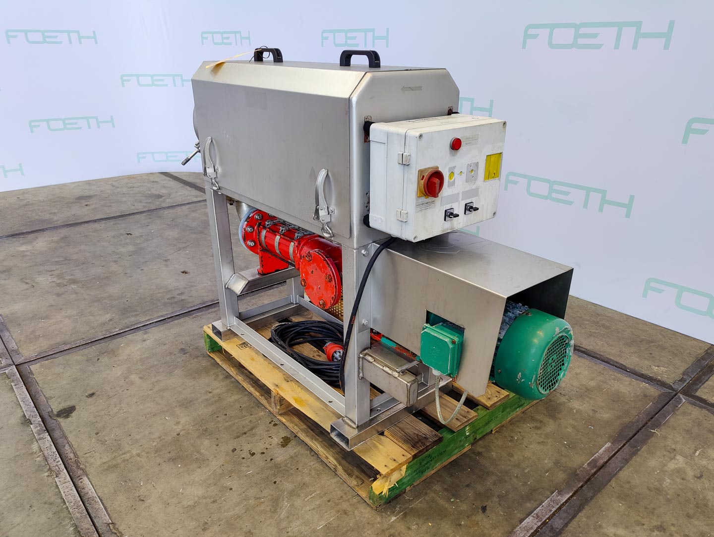 General SKU002Y164 MakePUC Probst & Class TypeN-100E No.74099 LocationBarneveld Material Housing materialStainless steel Rotor materialStainless steel Main Features MaterialStainless steel Motor4 KW Inlet diameter50 mm Specified Features - Colloid mill Colloid mill in line(1x) Rotor sizesø 100mm Cross teethed rotorcheck Motor4,0 kW, (380 V, 2880 rpm) With variable speed drive(frequency converter) Speed100- 2880 rpm MaterialStainless steel Information Mounted on wheelscheck With switchcheck Floorspace1,7 x 0,7 m Total height1,1 m Weight300 kgColloid millsDiscountPuc Probst & ClasMills > Colloid millsDiscountBrand > Puc Probst & Clas What you can expect from Foeth: -- Machine is in working condition -- At a reduced price compared to new -- Ready for shipping to any destination worldwide -- You are welcome to inspect the machine in Barneveld, The Netherlands. Ple ...