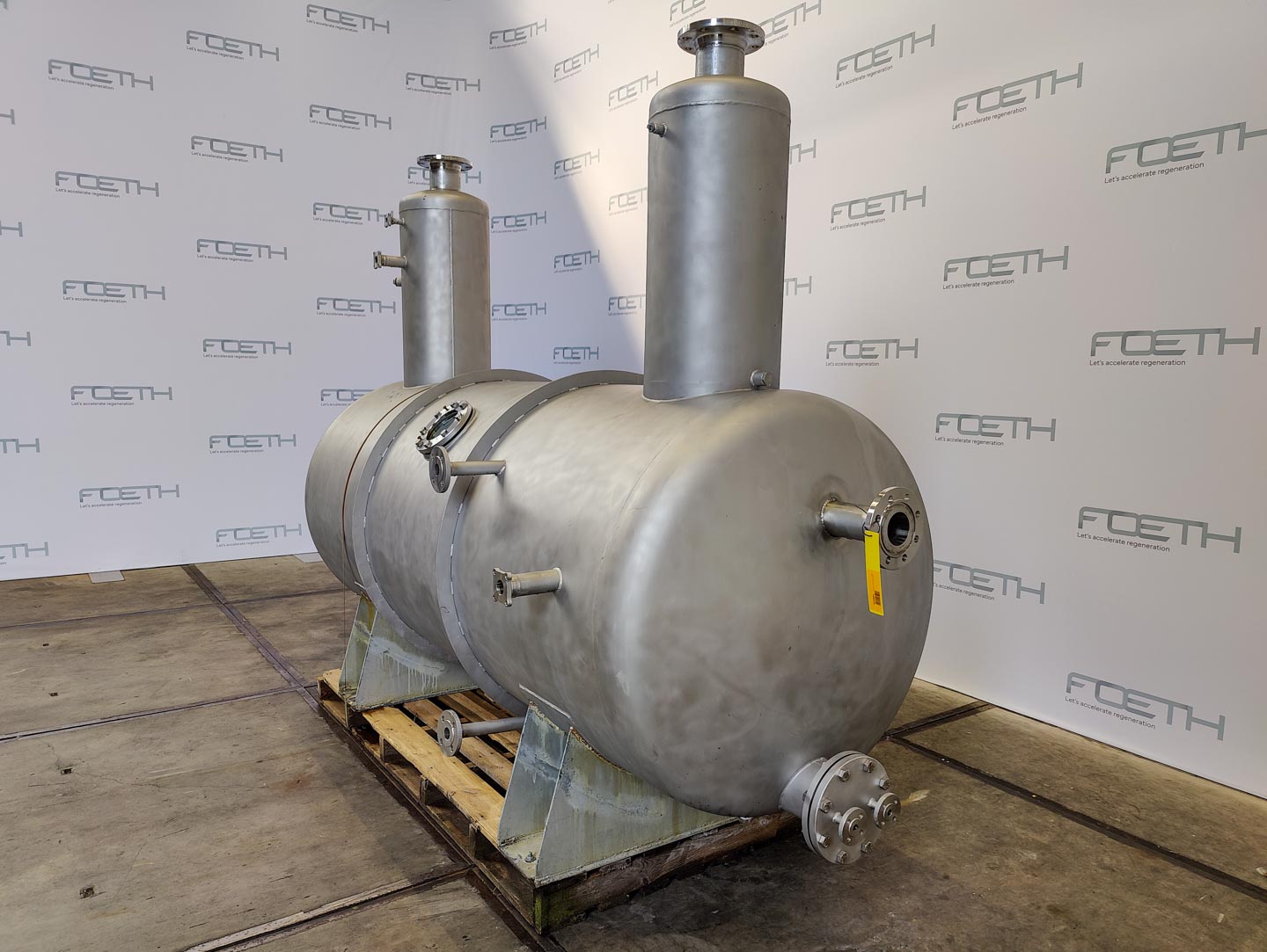 General SKU345S802 MakeEnco Energie Componenten (AT) No.T7201/1 Year of construction2011 LocationBarneveld Pressure Working pressure shell16 Bar Vacuum possible shellcheck Working pressure tubes16 Bar Tubular vacuum possiblecheck Main Features Shell (Material)Stainless steel Tube (Material)Stainless steel Surface13.5 m2 Specified Features - Shell and tube heat exchanger MaterialStainless steel 1.4571 (316Ti) Heat exchangercheck Horizontalcheck Notified body(TuV) Heating surface13,5 m2 Tube capacity50 Ltr Number of tubes:73 Tube diameter20mm Tube length3000mm Wall thickness tubes1.5mm Max. temperature-15/150 degr.C. Shell capacity90 Ltr. Cover connections(2x) DN50 Information Floorspace3,1x0,5 < Total height0,5 M Weight350 KG CEcheckOils & fatConsumer wastePaints & coatingsPowdered foodsGeneric medicinesOintmentsTea, herbs & coffeeFine chemicalsStarchOthe ...