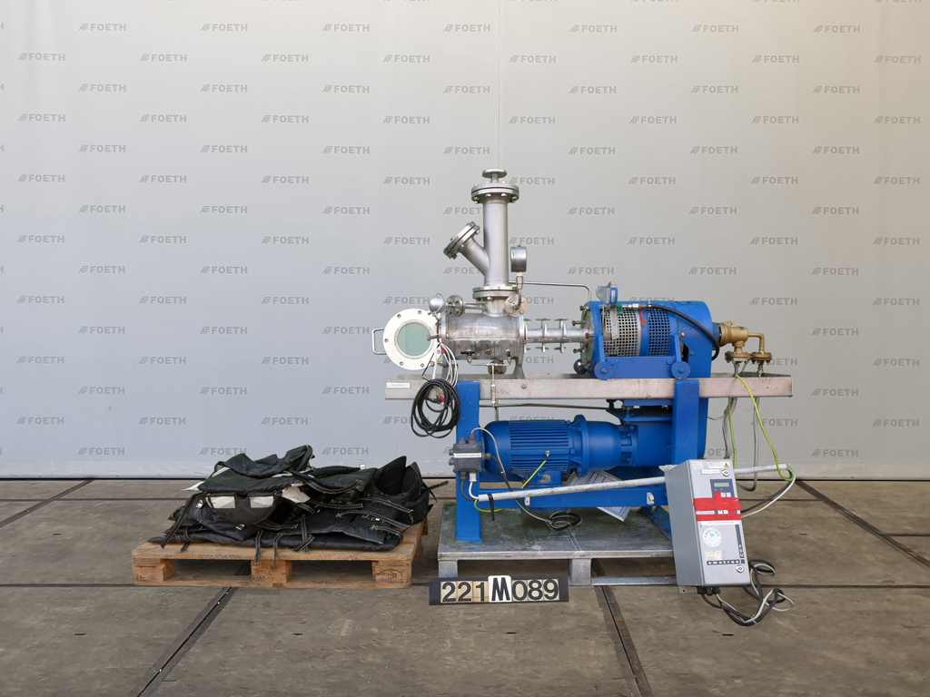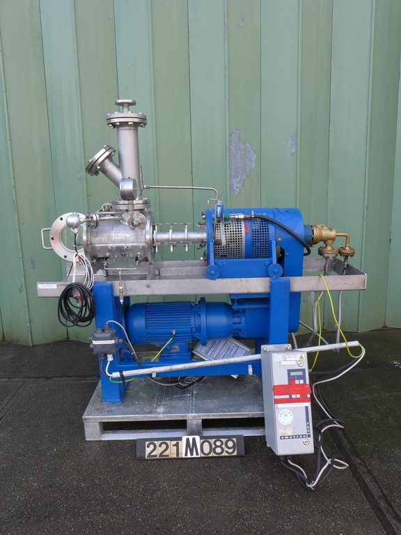 General SKU221M089 MakeKraus Maffei TypeRTD-8 (total heating surface 0,28 m2) No.8603 Year of construction1990 Mounted on framecheck Pressure Working pressure10 Bar Vacuum possiblecheck Working pressure jacket16 Bar Main Features MaterialStainless steel Volume8 Ltr. Motor7.5 KW Specified Features - Paddle dryer Paddle dryerReactotherm (1x) Capacity8 Ltr. Trough sizesdia.170x375mm With jacketcheck 2 Ltr. Shaft can be heatedcheck 1 Ltr. Max. temperature350 Degr. C. Motor7,5 kW, 500 Volt (Ex) With variable speed drive(frequency inverter) MaterialStainless steel 1.4571 (316Ti) Information LocationBarneveld Floorspace1,8x0,9 M Total height1,8 M Weight700 KG ATEX compatiblecheckPowdered foodsGeneric medicinesOintmentsFine chemicalsStarchOther chemicalBiotechnologyAgrochemicalsCatalysts & fillersFeed additivesOther pharmaceuticsCosmeticsSugarPaddle dryersAnimal fe ...